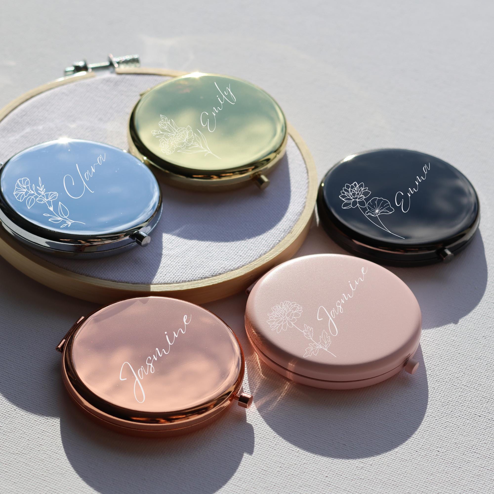 Custom cute compact mirror compact gold mirror Engraved Compact Poc...