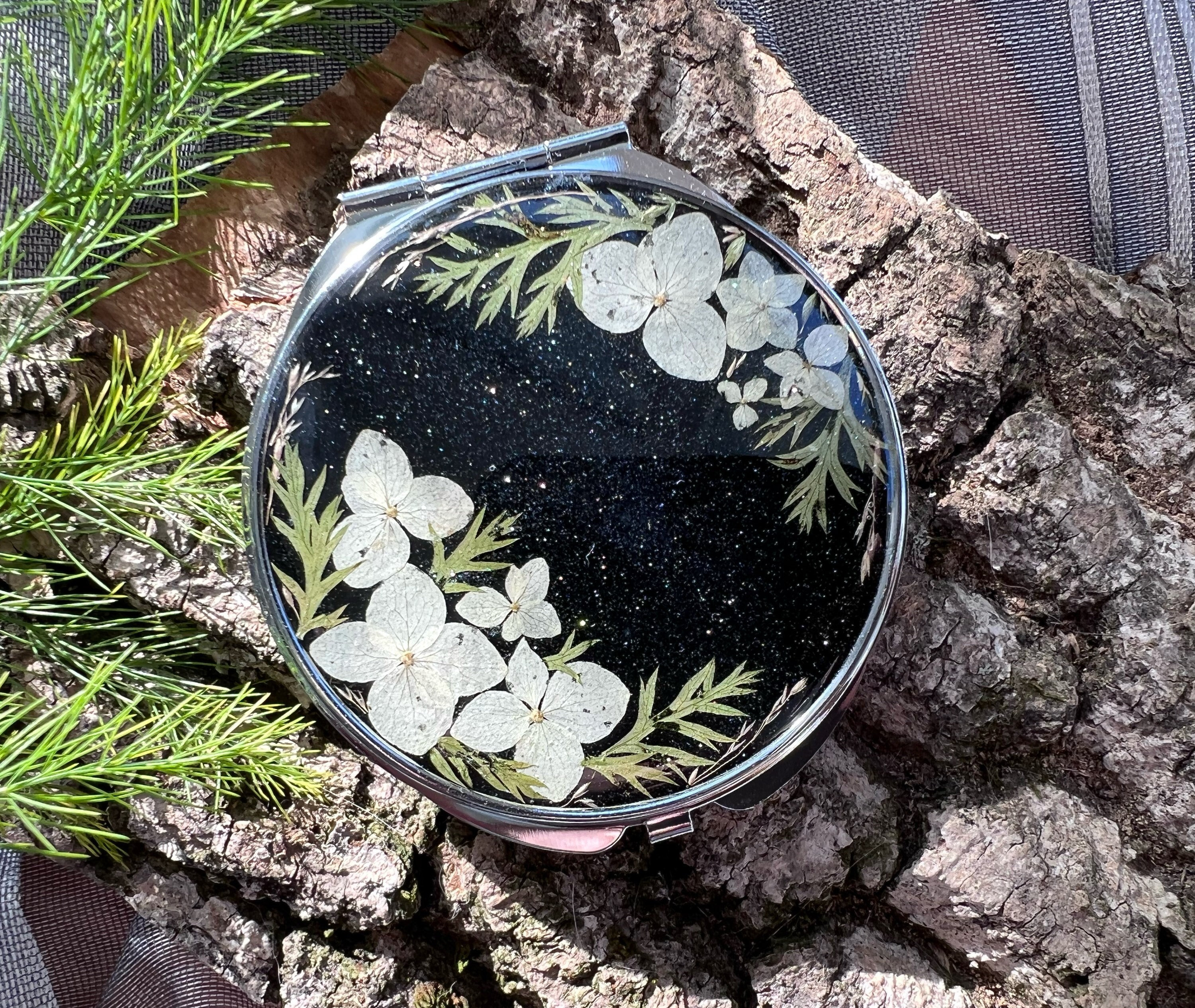 Real dried flowers mirror, Pocket mirror, Compact mirror, Hand mirr...