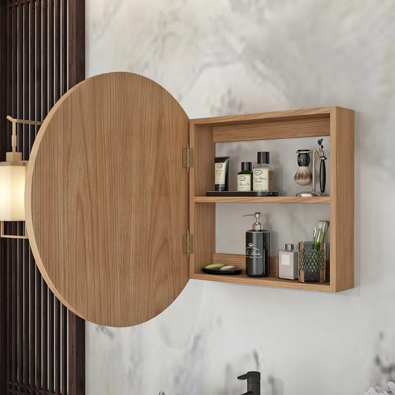 Smart round mirror cabinet Solid wood simple Japanese bathroom Wall...