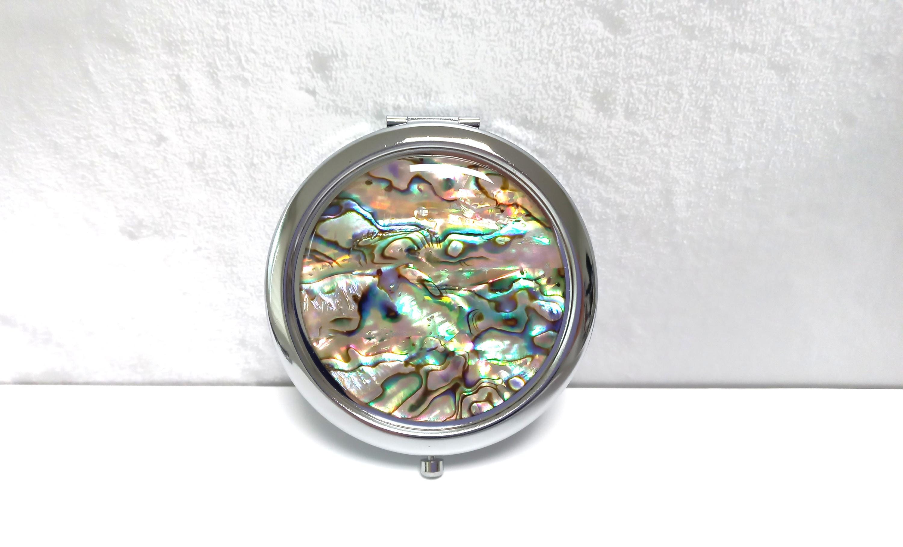 Mother of Pearl Compact Mirror: Double Sided Regular Magnifying Gla...