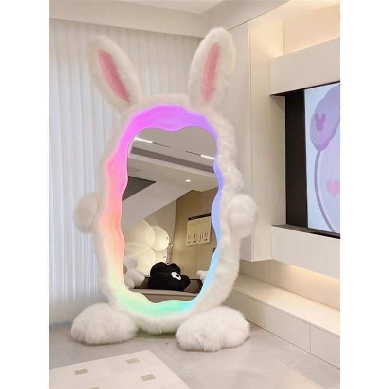 Plush rabbit full body floor mirror living room home special-shaped cartoon light live stream atmosp...