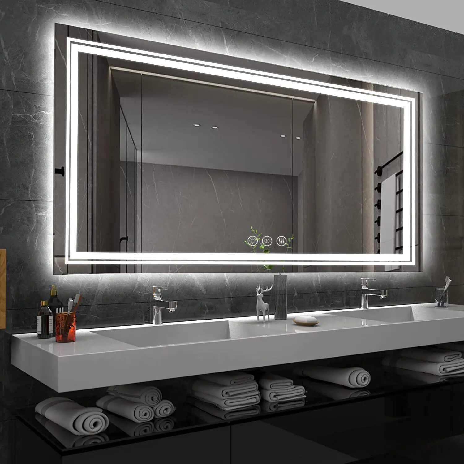 Extra Large Rectangle Bathroom Mirror LED Vanity Dimmable Backlit Anti-Fog Memory with Front and Bac...