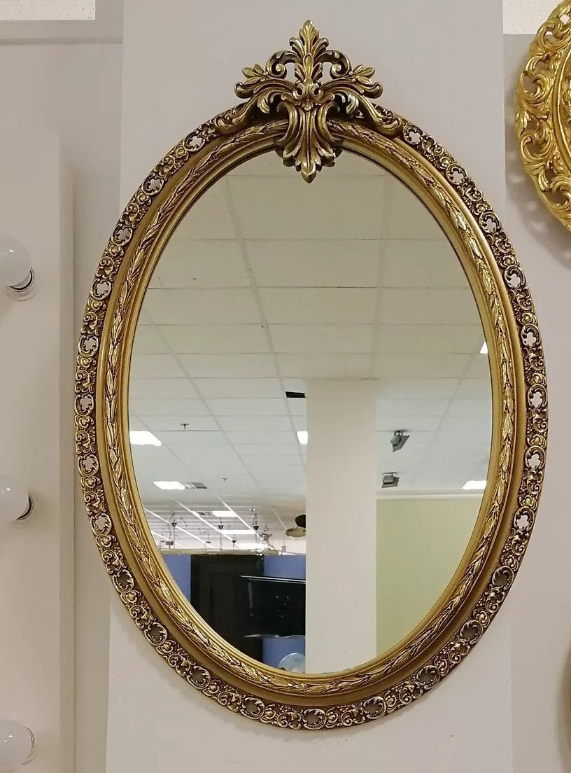 "Elevate Your Space with Timeless Elegance: Antique Gold Oval Wood Framed Mirror Transform your...