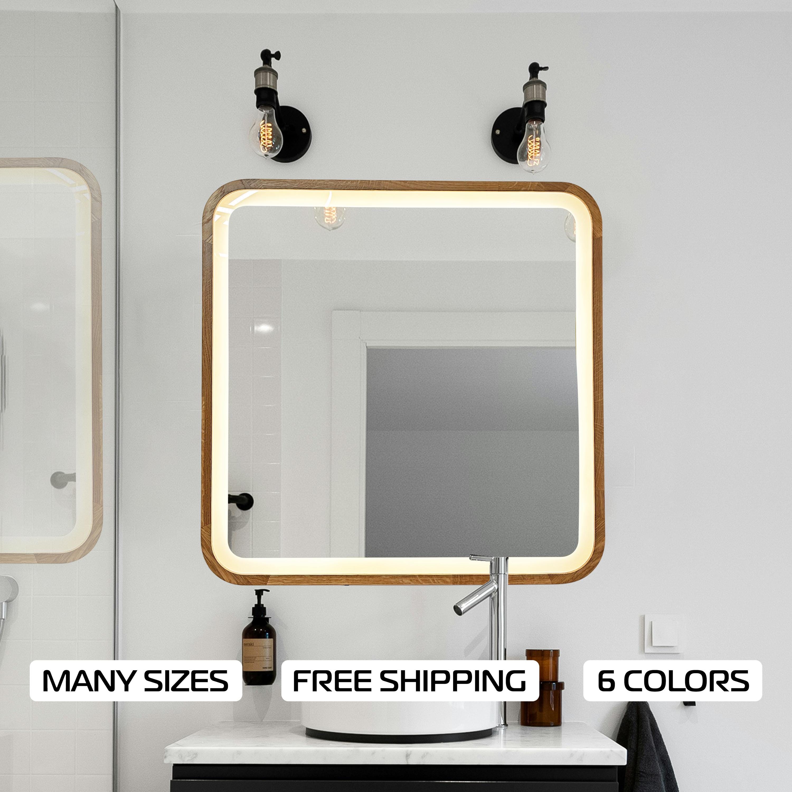 Rectangular Wooden Mirror, LED Lighting Mirror, Wooden Wall Mirror,...
