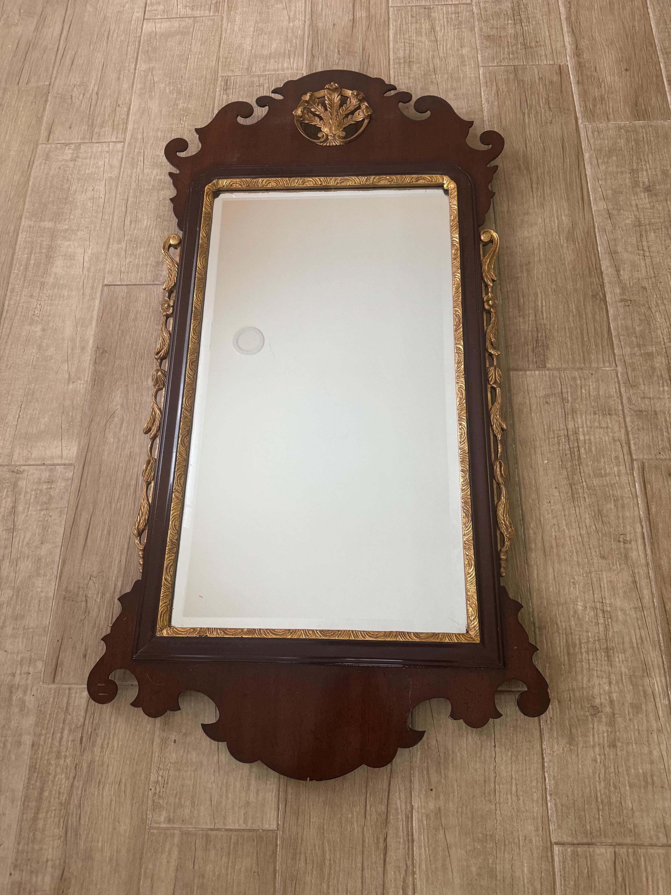 Vintage Chippendale Style Wall Mirror- Mahogany & Gilt Brass Ca...