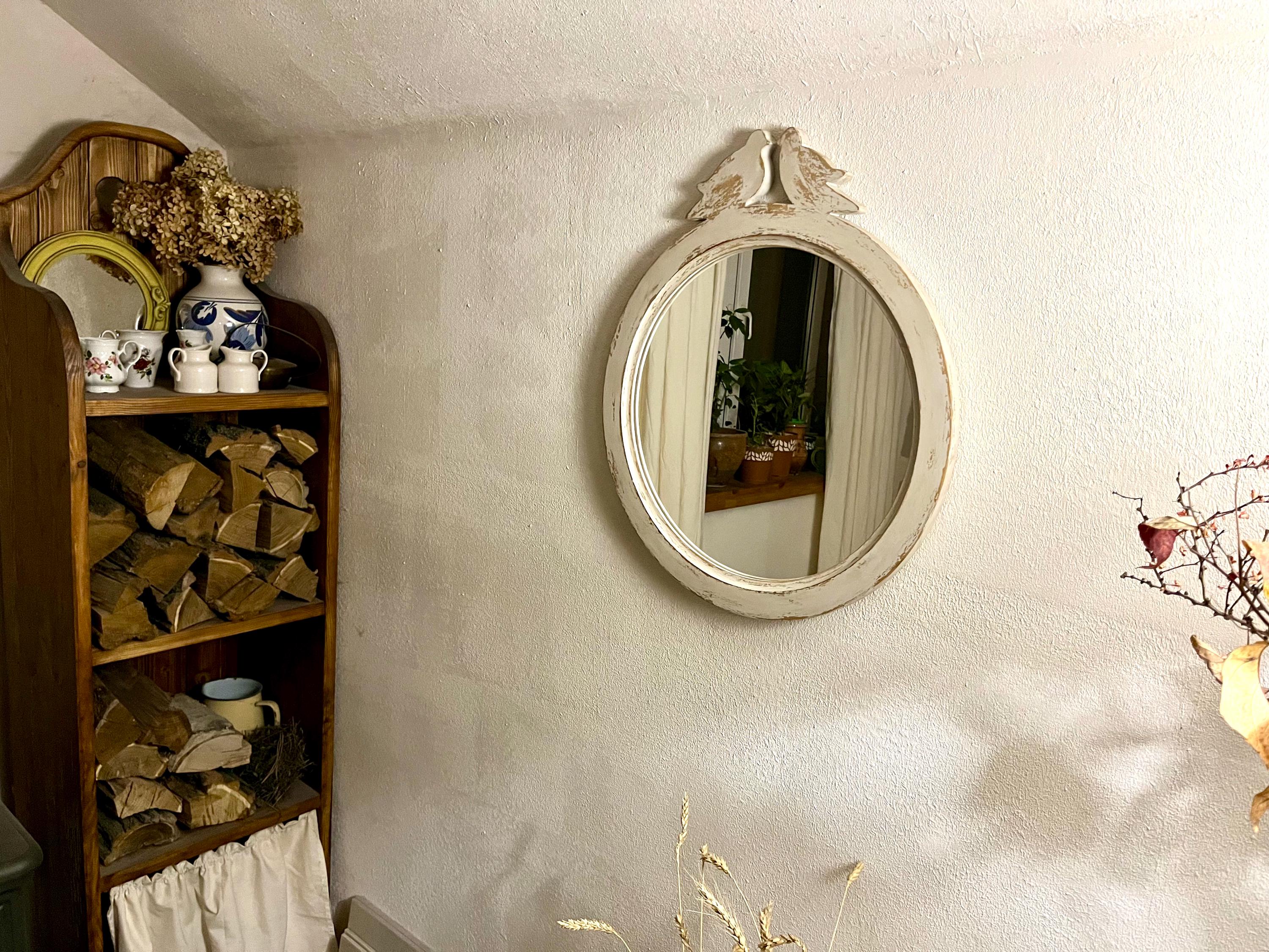 Round mirror for wall, Vintage style french mirror, Bird mirror for...