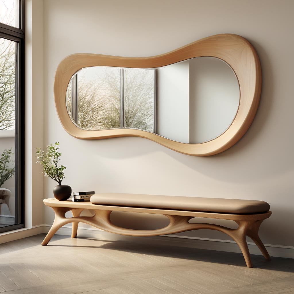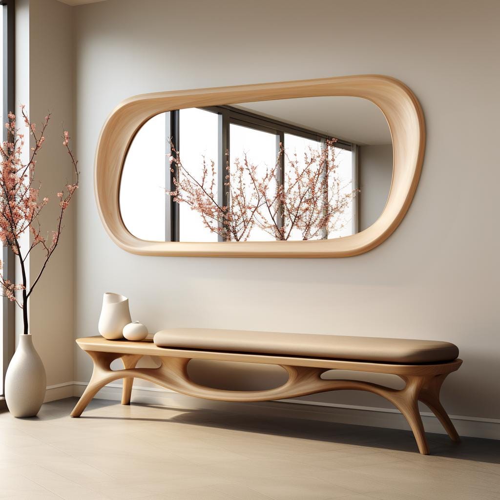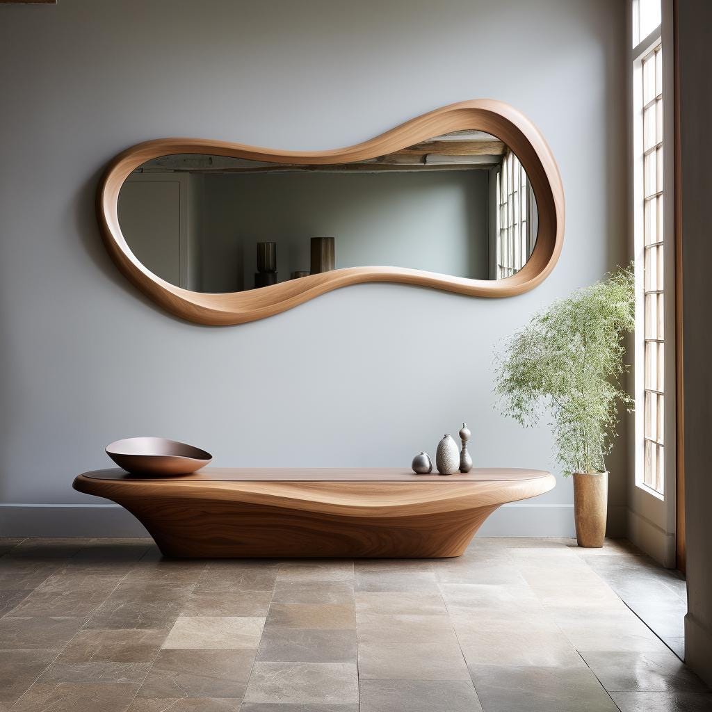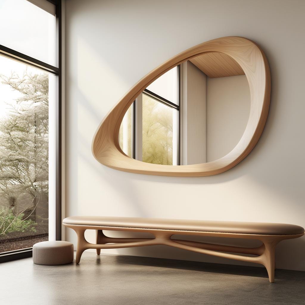 Oak Irregular Mirror, Oak Asymmetrical Mirror, Asymmetrical Entrywa...