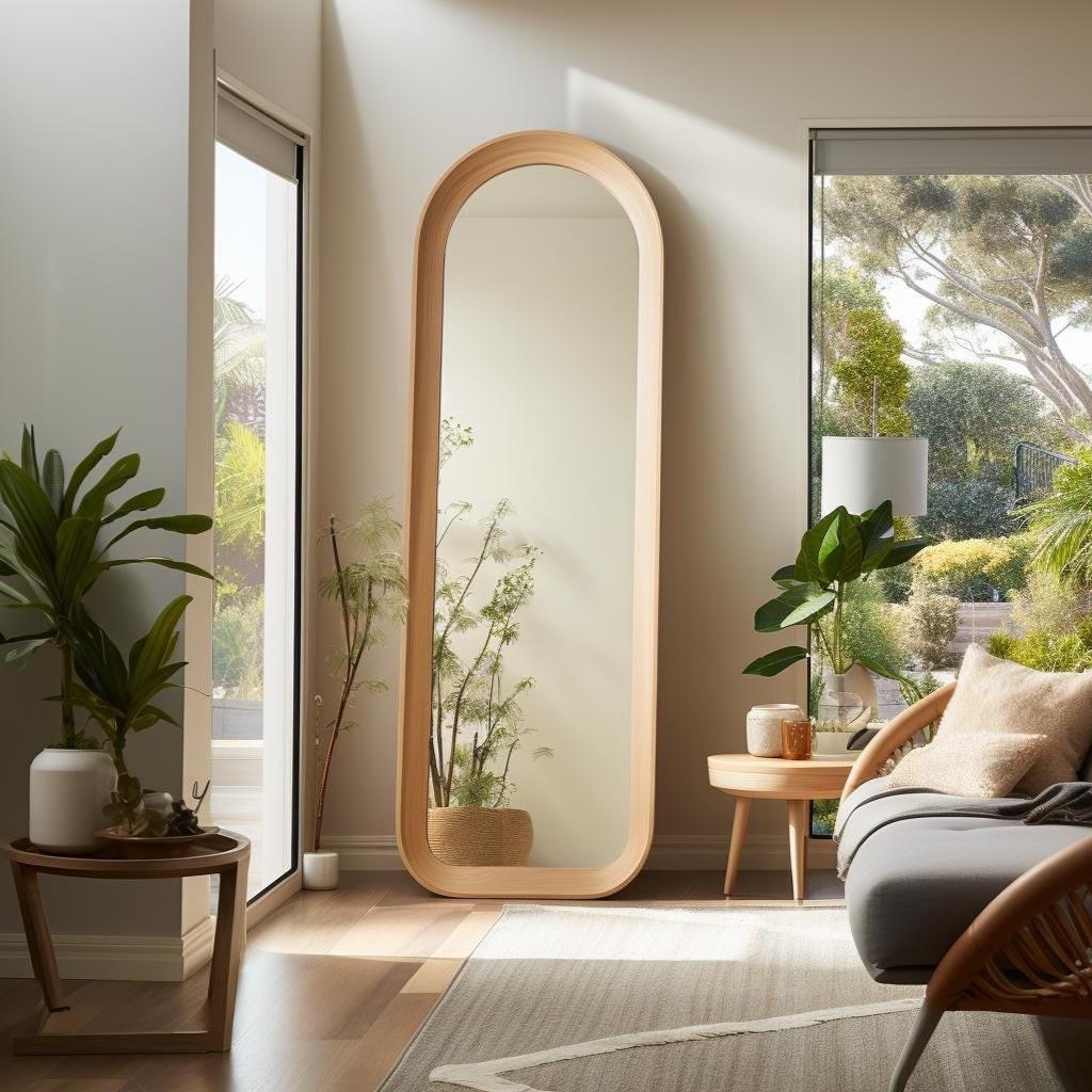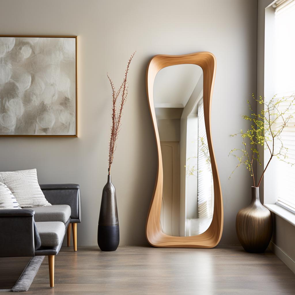 Asymmetrical Oak Full Length Mirror - Oak Irregular Standing Mirror...