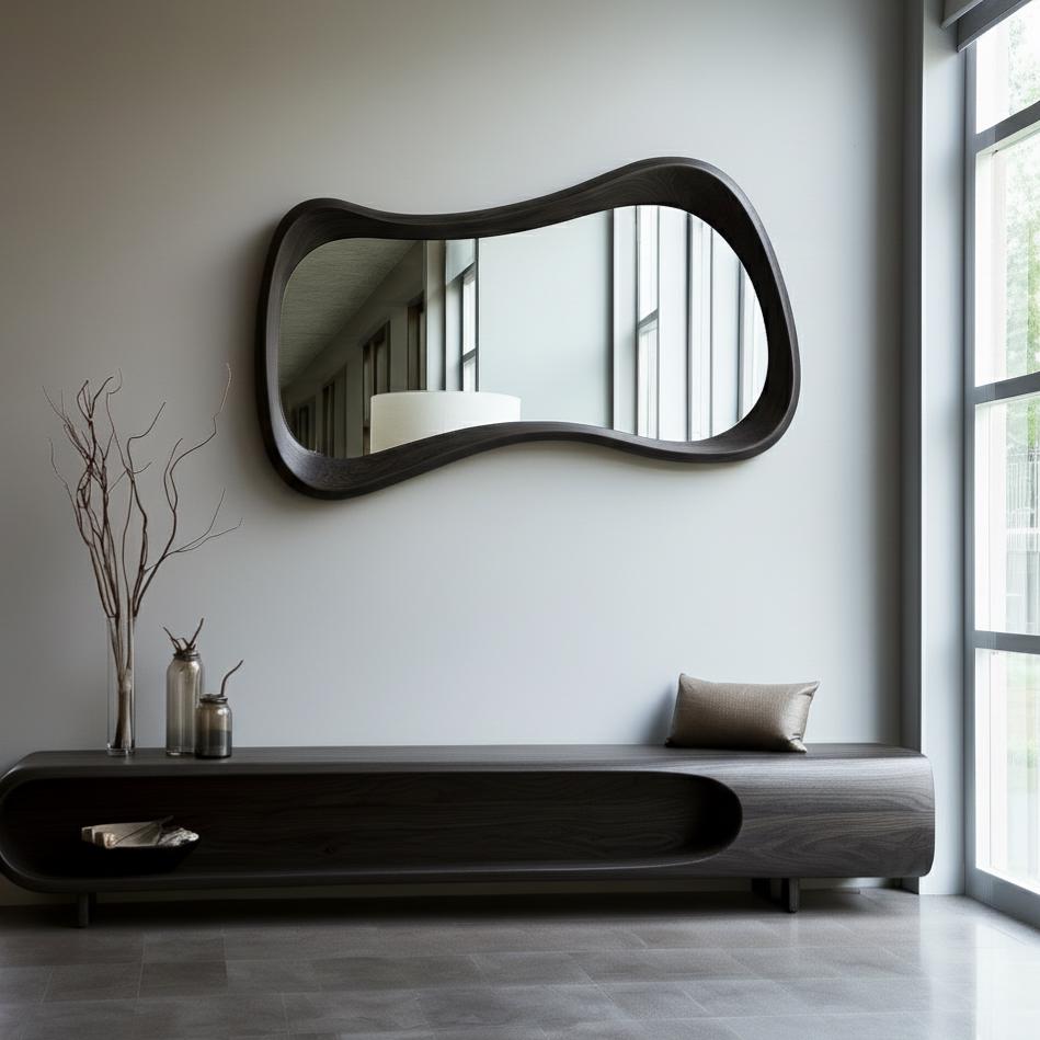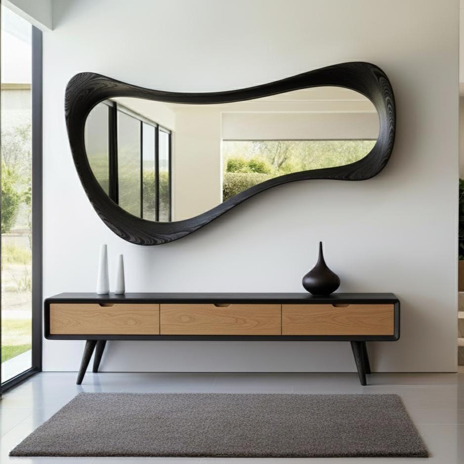 Black Oak Asymmetrical Mirror - Mid-Century Modern Mirror - Black O...