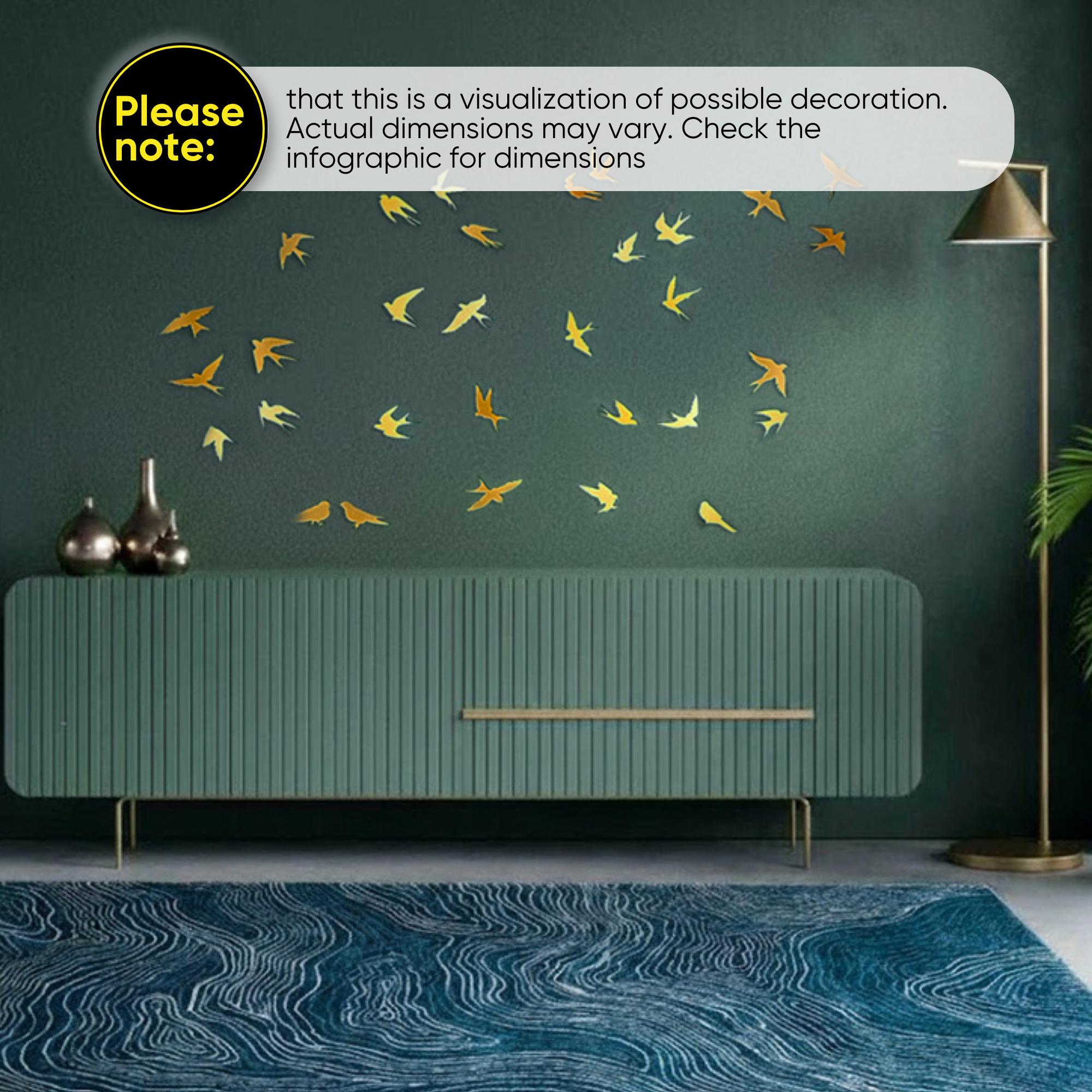 Mirror Wall Decor Birds Set of 31, Gold or Silver Acrylic Birds, 3D...