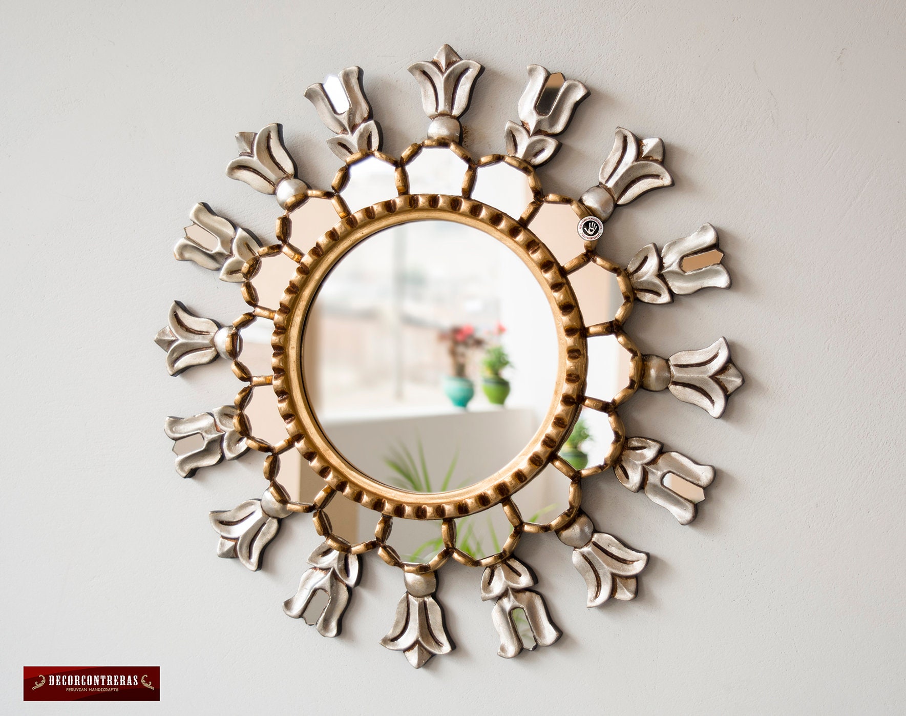 "ROUND WALL MIRROR, \"PERUVIAN SUN\" - WALL DECOR - PERUVIAN HANDICRAFTS Evoking the ...