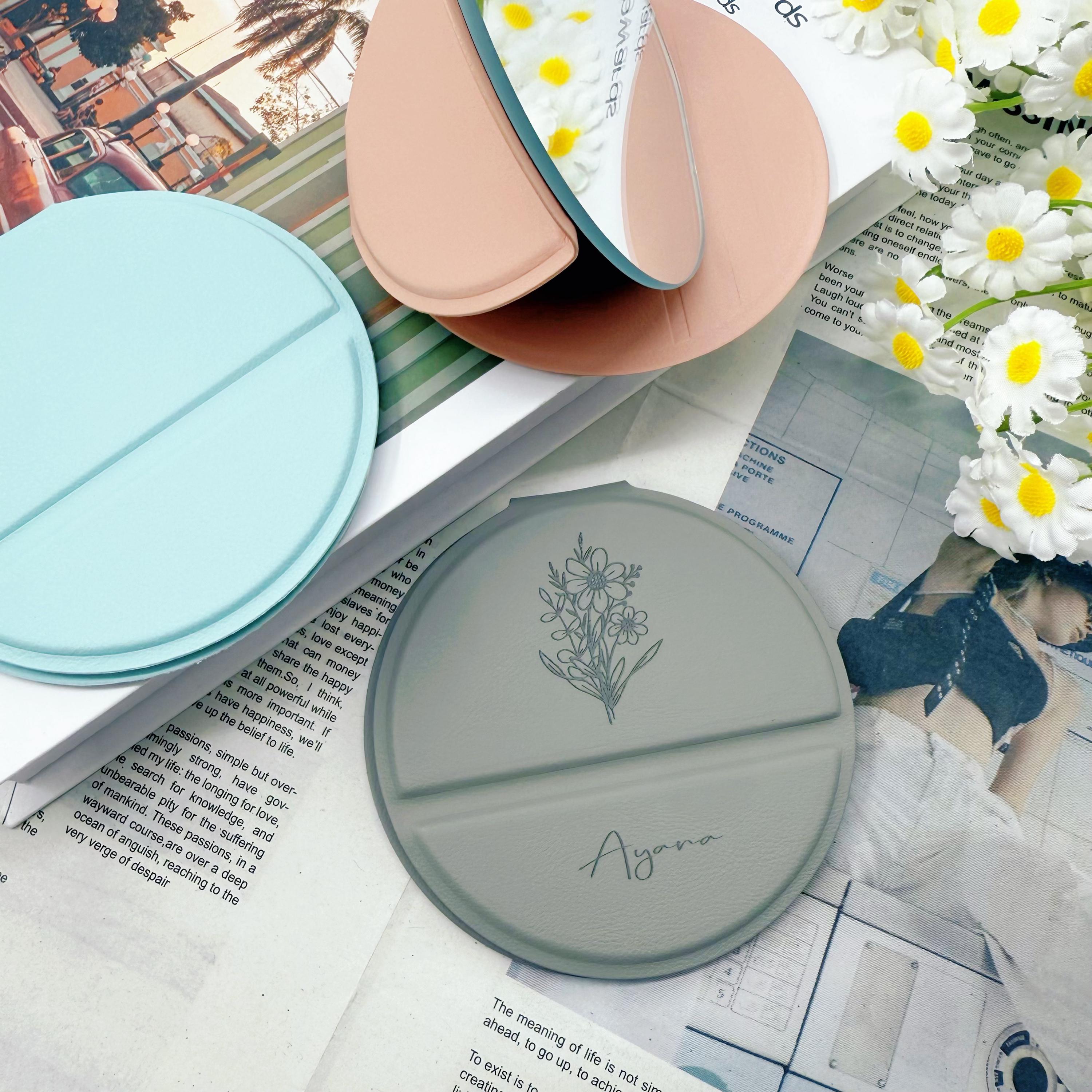 Customized Round Leather Folding Mirror,BridesmaidGift,pocket makeu...