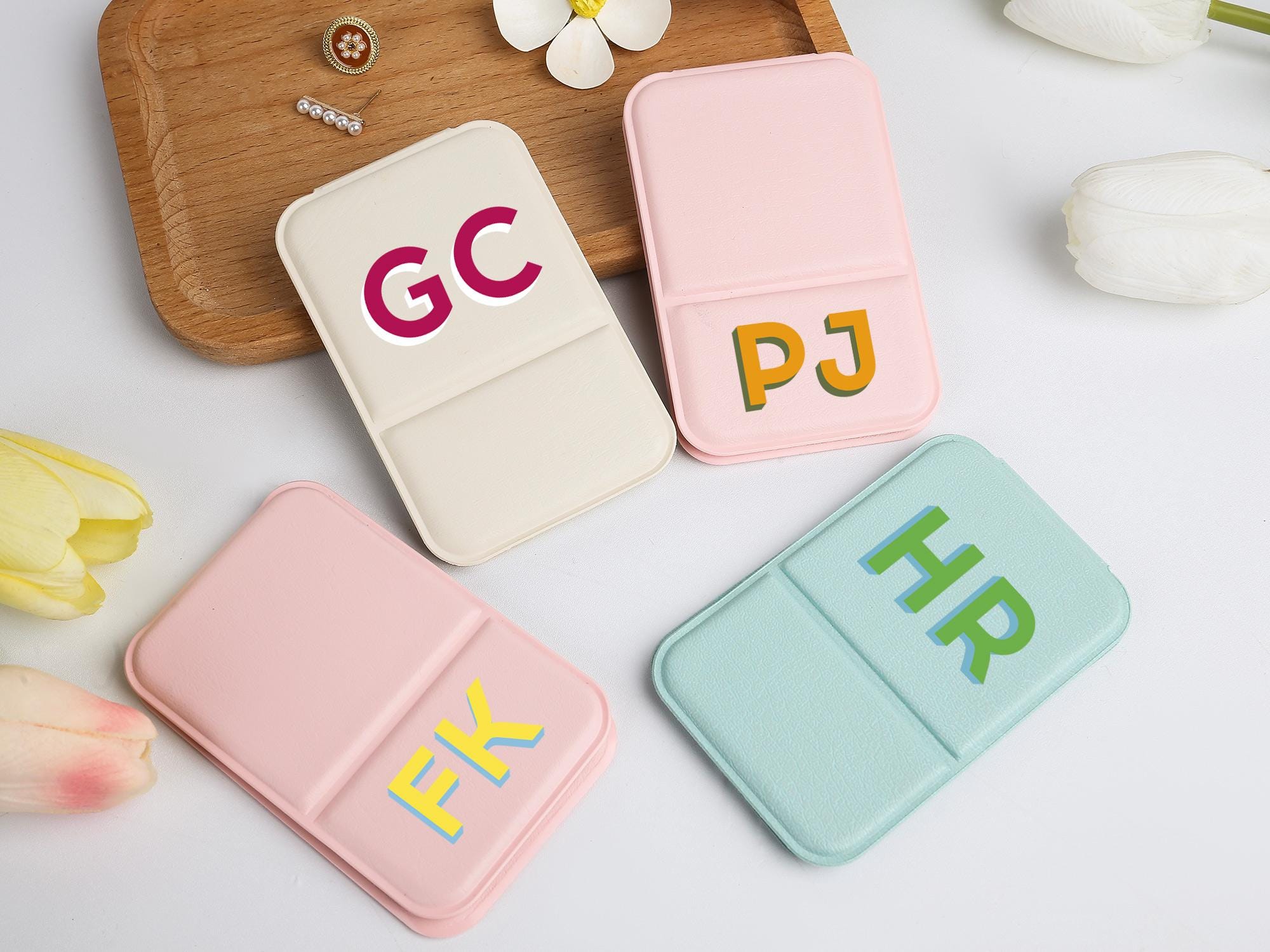 Initial Travel Compact Mirror, Bridesmaid Gift for Her, Folding Mak...