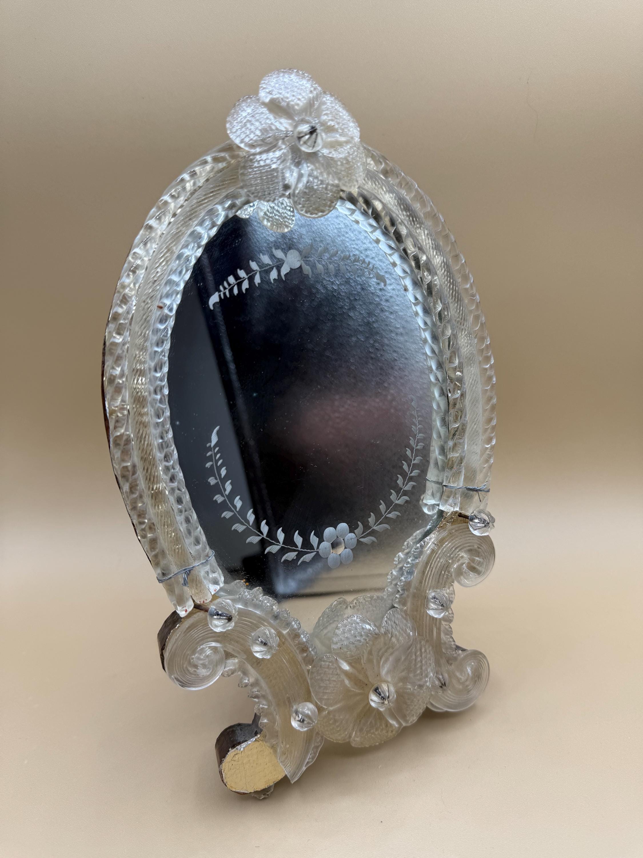 "Beautiful Italian Venetian Murano Glass mirror with delicate glass flowers applied 9 1/2\"...