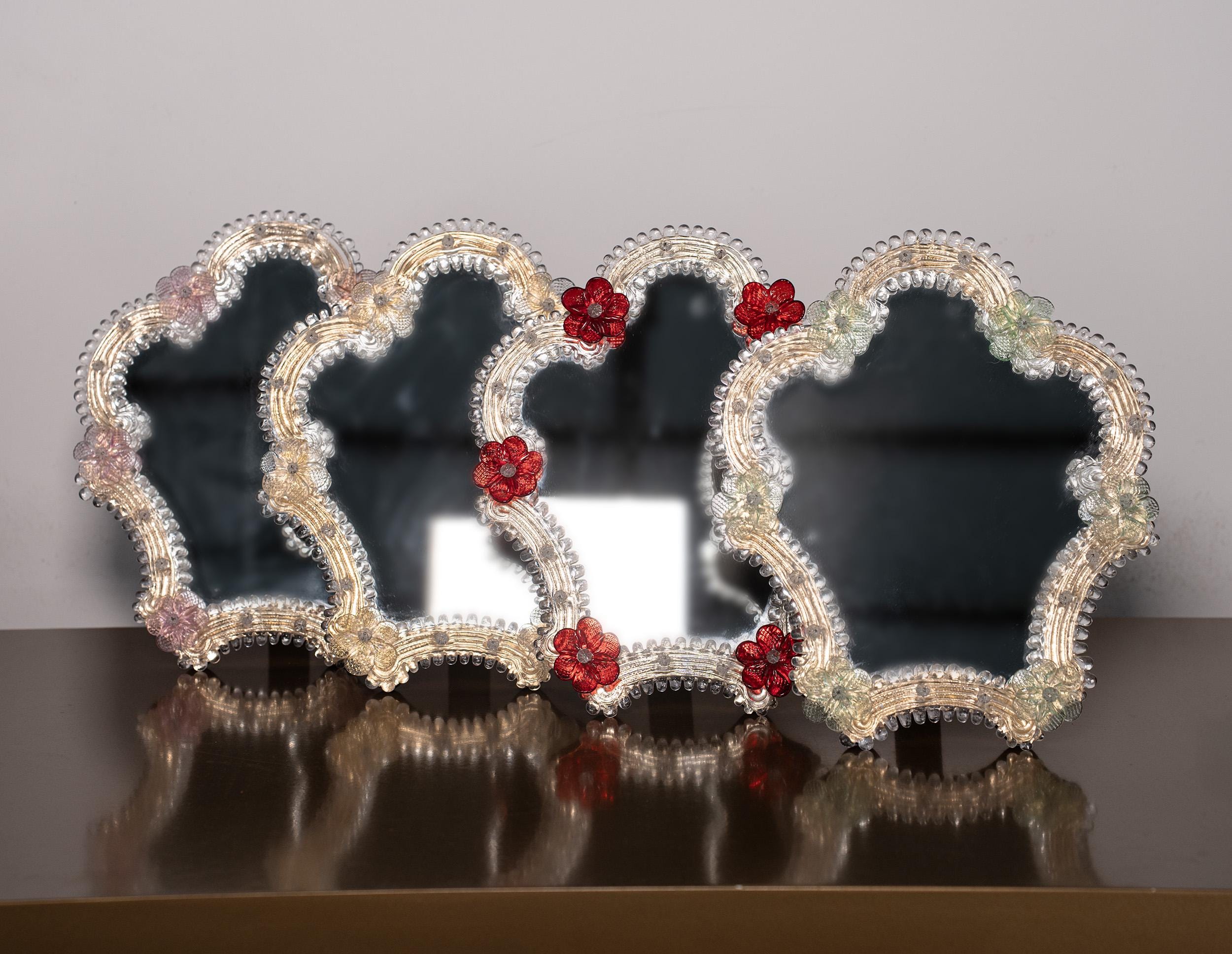 Venetian Vintage Wall or Table mirror Murano Glass multicolor flowe...