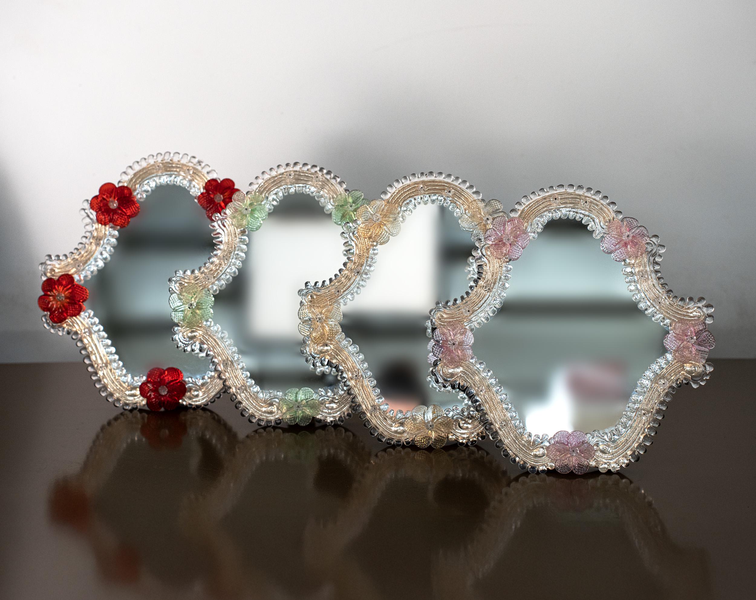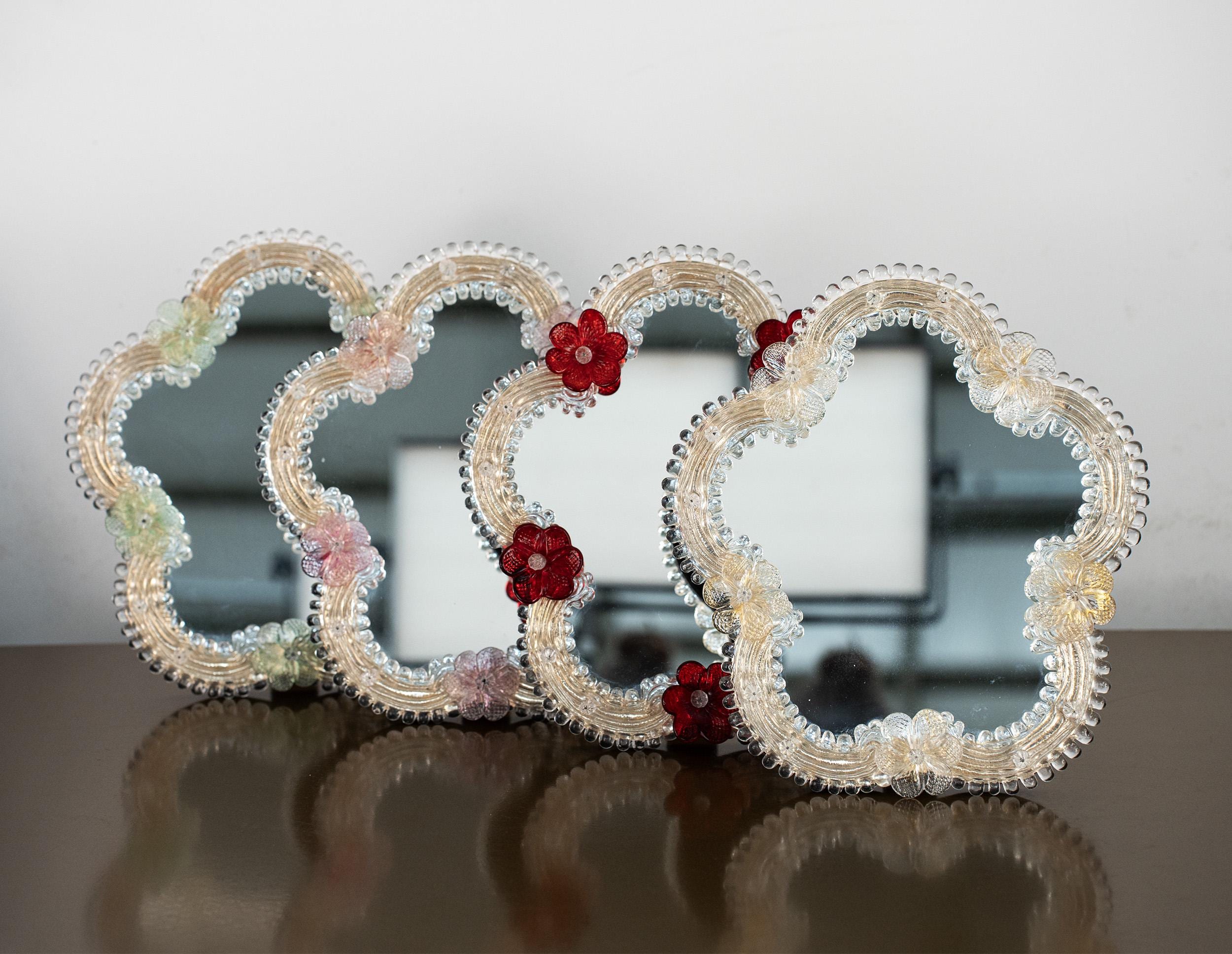 "Small Italian Murano Glass wall mirror with multicolor flowers and gold details, Colourful Vin...