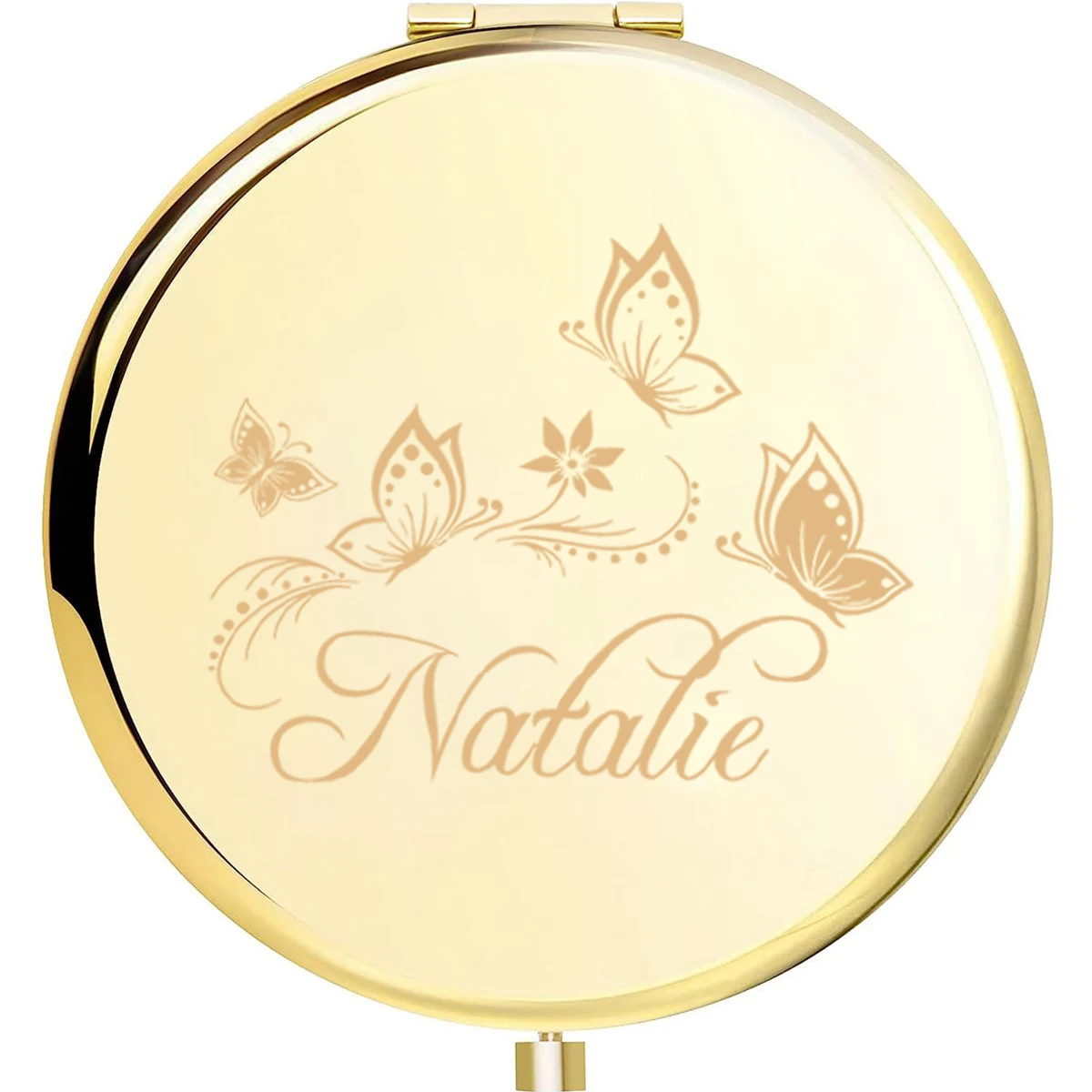 1pc Lovely flower with butterfly Customized Text Round Circle Fold Mirror Pocket Mirror Mirror With ...