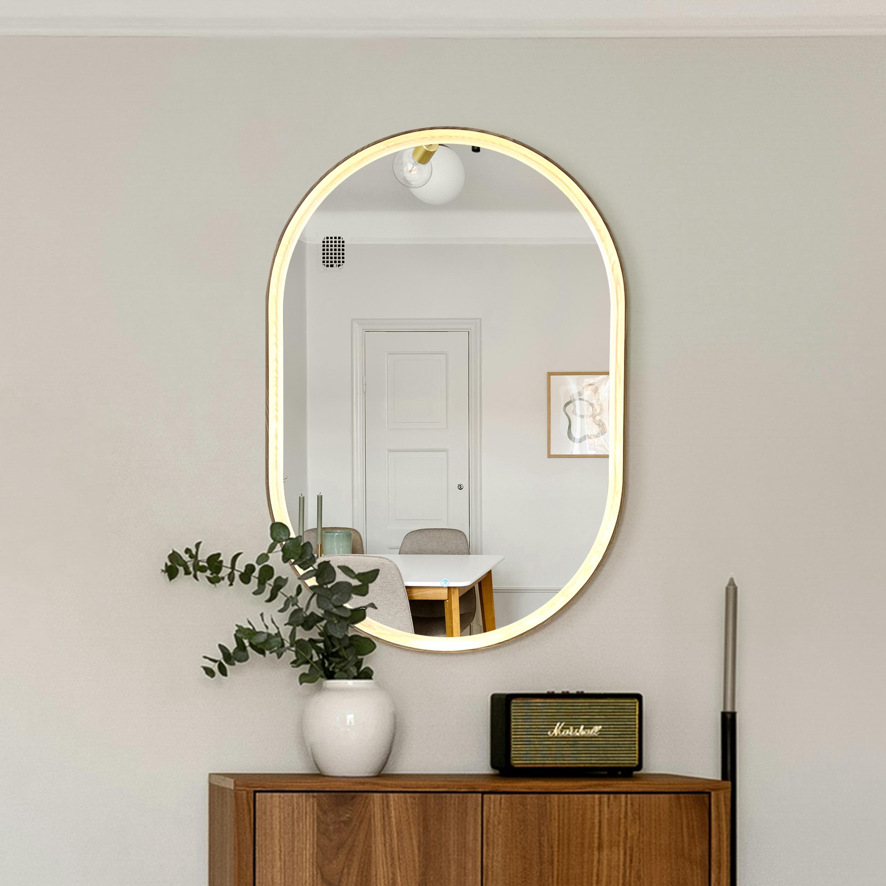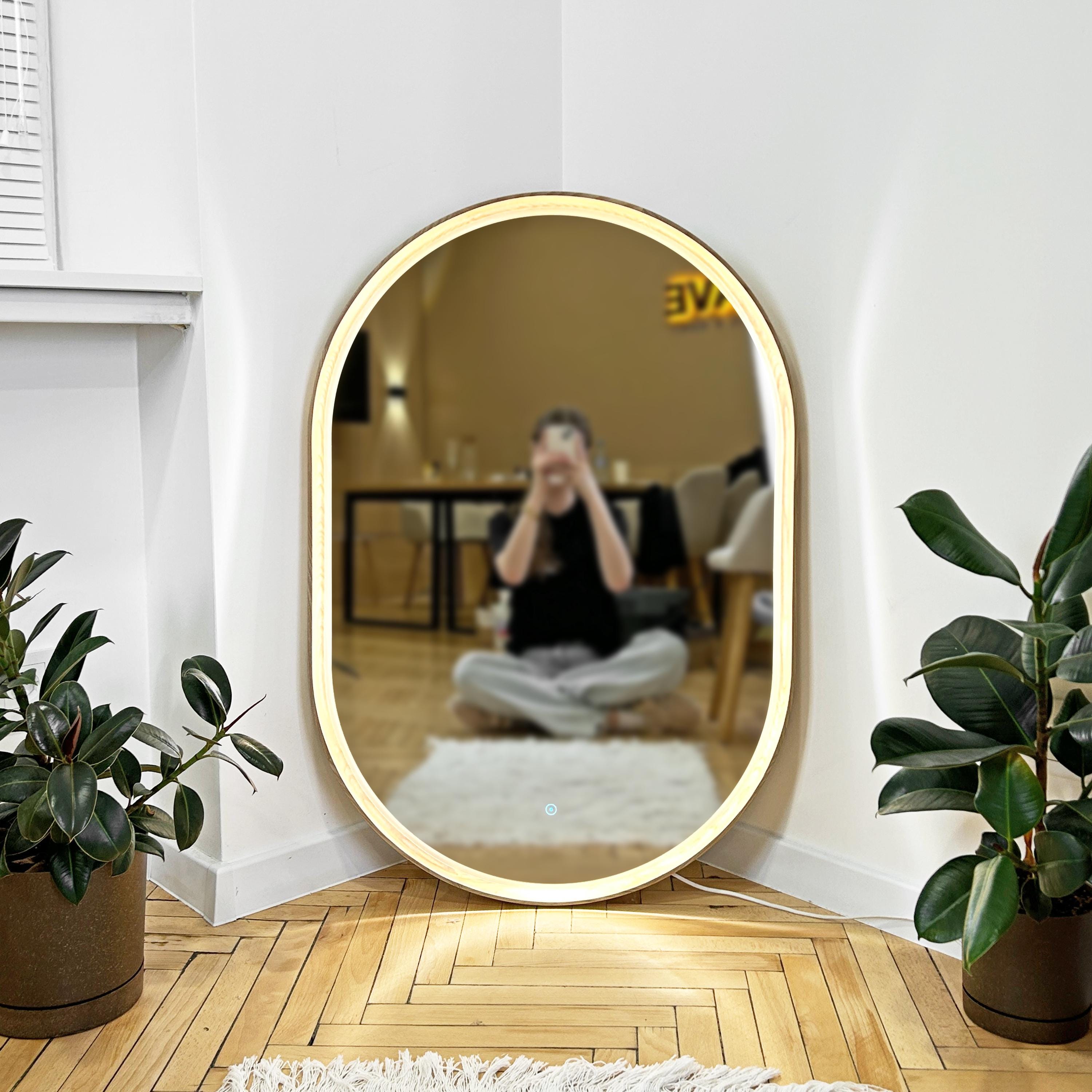 Wooden Oval Mirror, Large oak mirror, LED Lights Mirror, Walnut Mir...