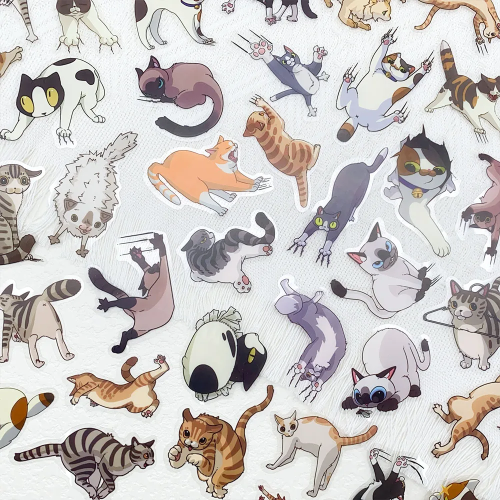 50pcs Cartoon Cute Cat Scratch Transparent PET Stickers Decals For ...