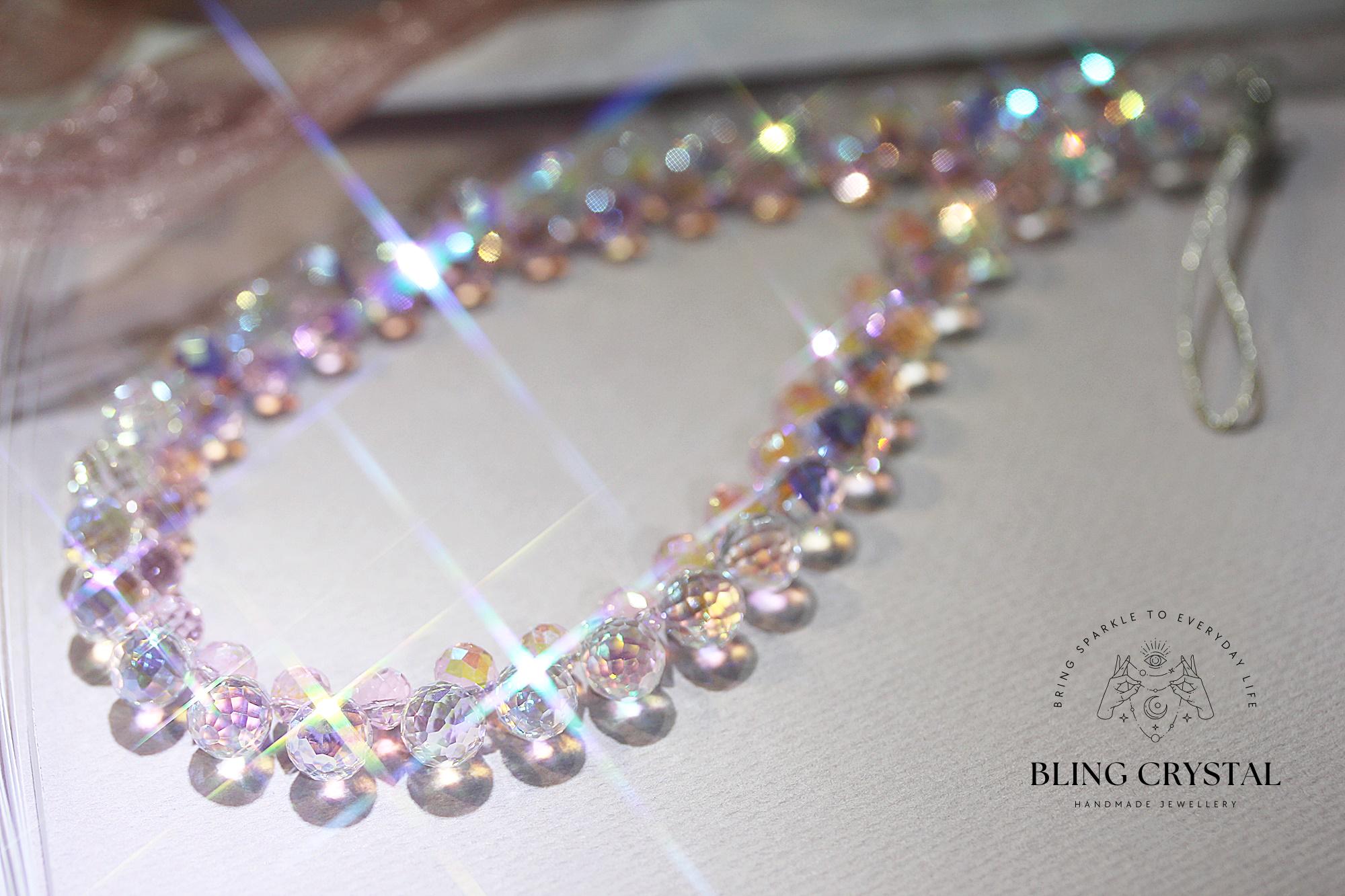 Highlights: -Beads Type : Aurora AB color facet teardrop beads and Pink facet teardrop crystal beads...