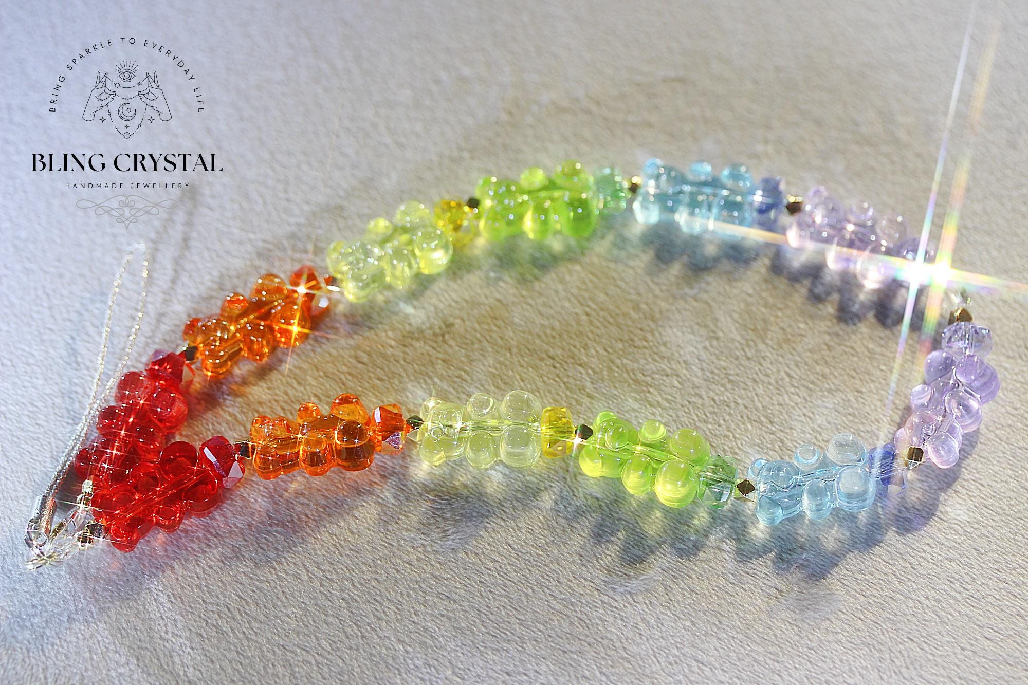 Highlights: -Beads Type : Rainbow color Jelly gummy bear candy beads and facet crystal beads Length:...