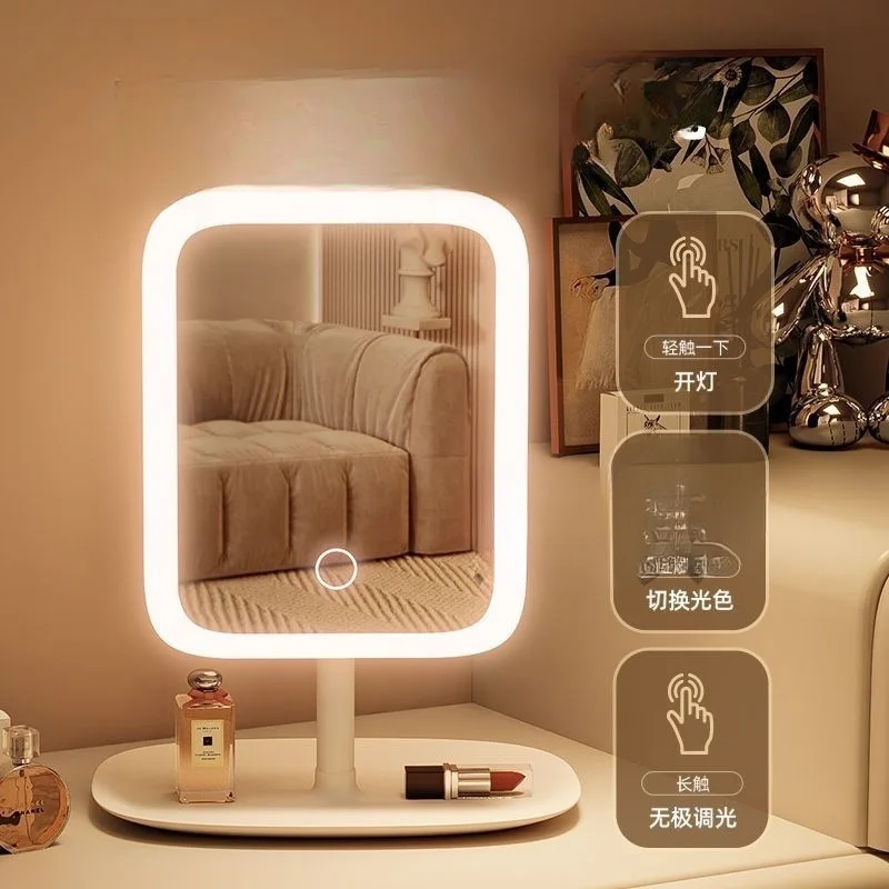 USB Mirror Makeup Mirror Desktop Portable with Light Makeup Mirror Home Student Dormitory Makeup Mir...