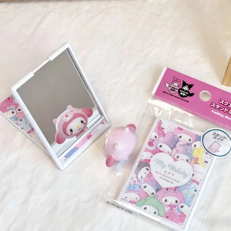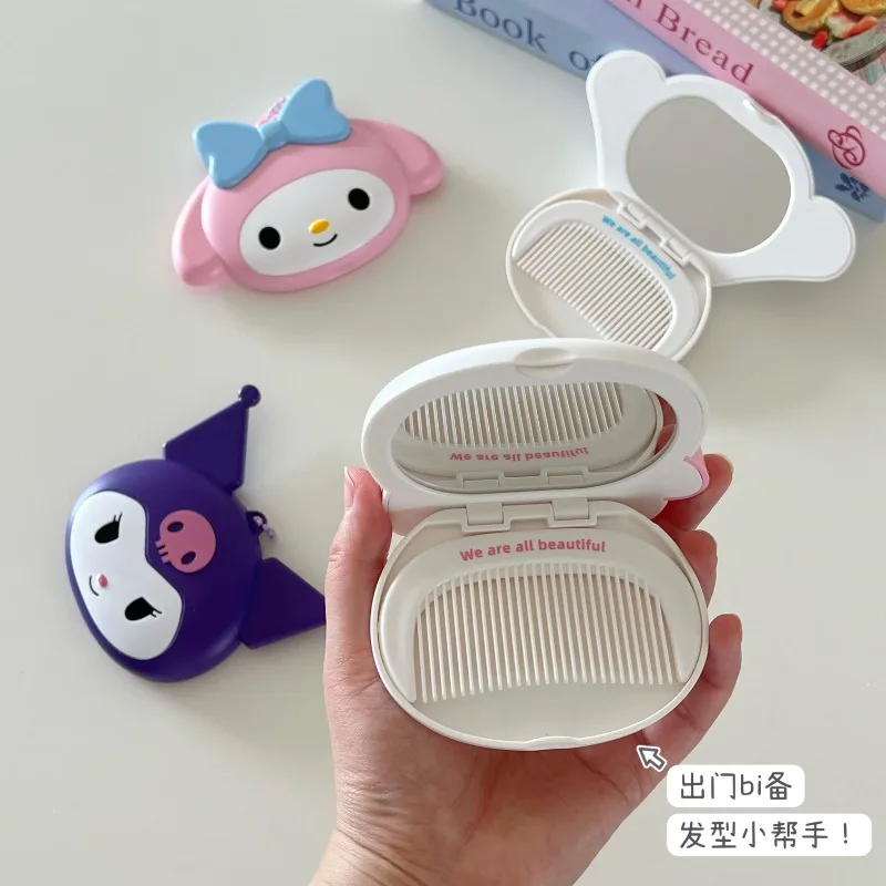 Sanrio Hello Kitty Head Folding Mini Mirror Set Kuromi Cinnamoroll Mirror Portable Small Mirror Melo...