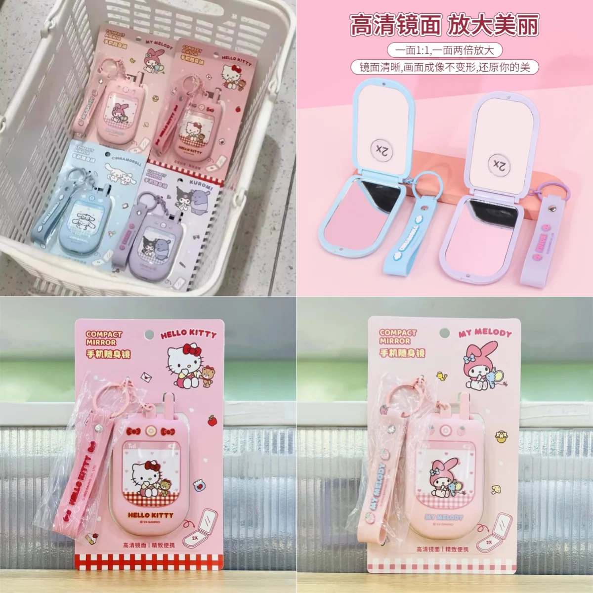 2026 Kawaii Sanrio HelloKitty Kuromi My Melody Folding Phone Shaped Compact Mirror Cute Cartoon Anim...