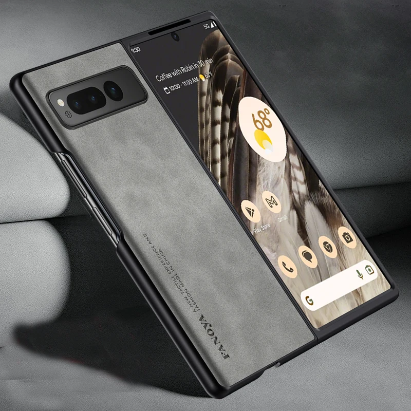 Matte Case for Pixel Fold PU Leather Hard Plastic Back Cover For Google Pixel Fold G9FPL