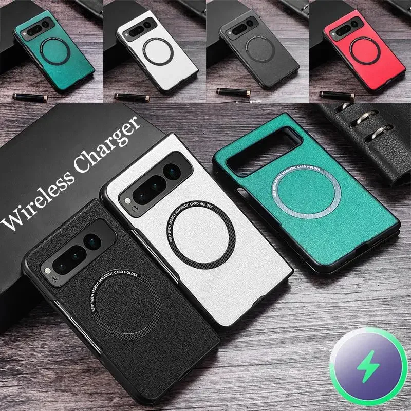 Premium PU Leather Case for Pixel Fold For Magsafe Wireless Charging Hard Back Cover For Google Pixe...