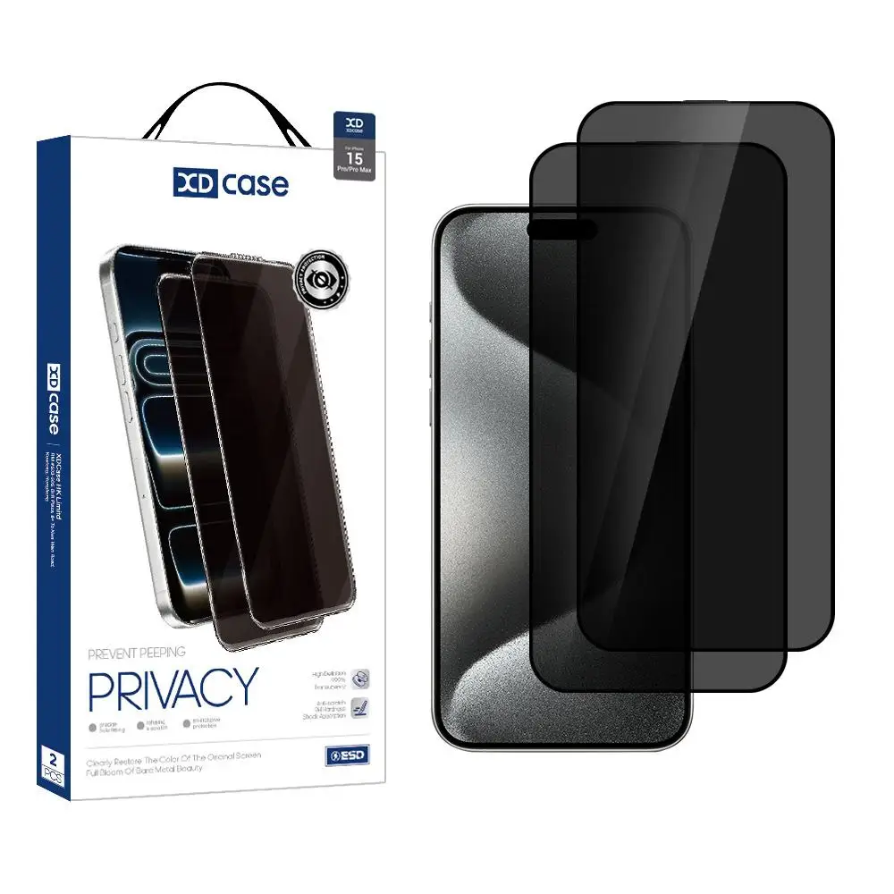 XDcase 2pcs / Pack Silk Screen Printed Anti-Peep Tempered Glass Screen Protector For iPhone 15 Pro M...