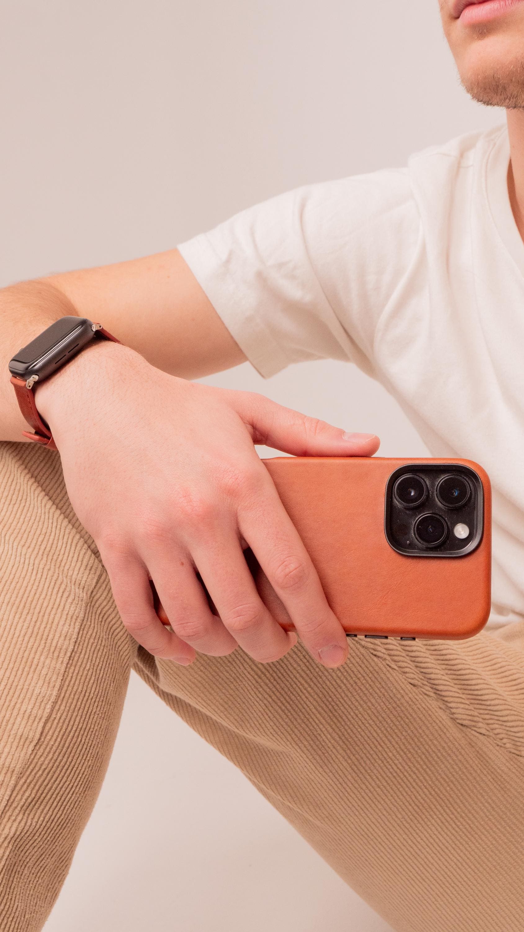 Protect your iPhone in timeless style with this handmade saddle brown leather case for iPhone 16 Pro...