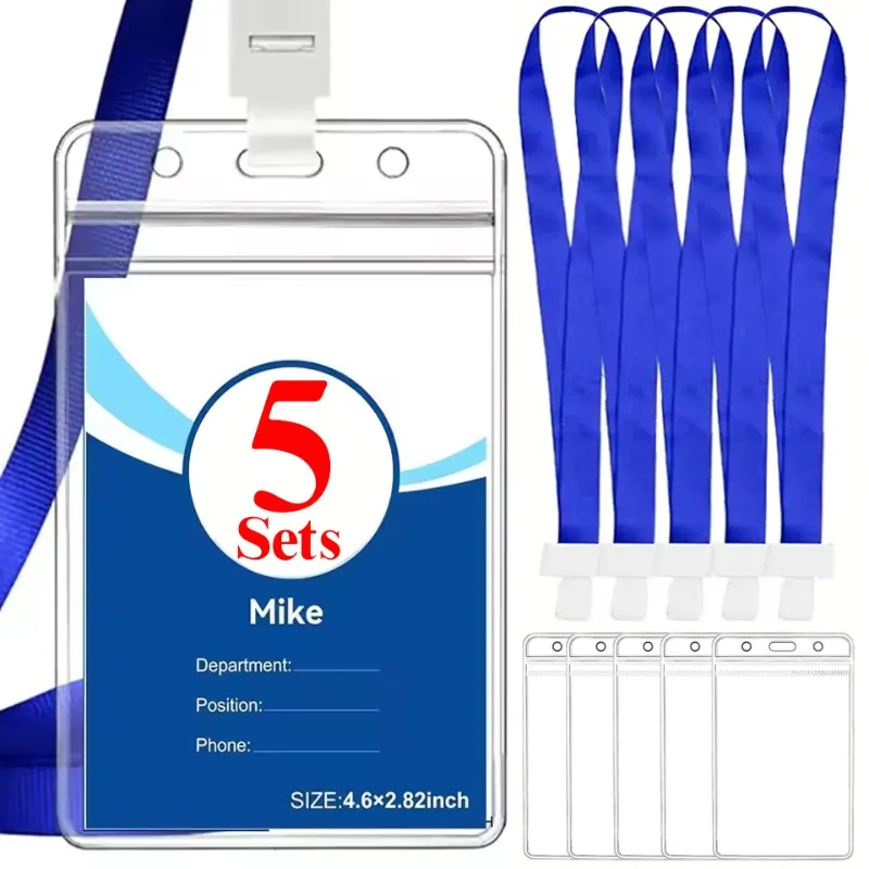 Resealable Vertical Card Holders with Flat Neck Lanyards Waterproof Transparent ID Card Holder Prote...