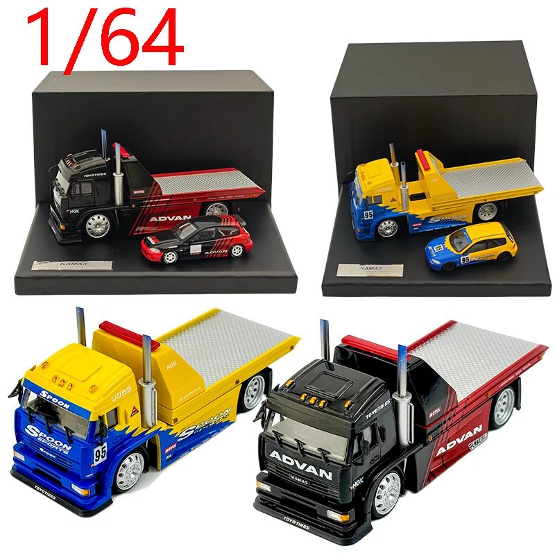 Diecast 1/64 Scale KamaZ Modified Transport Trailer Car Model Alloy KamaZ Spoon Advan Painted Car Mo...