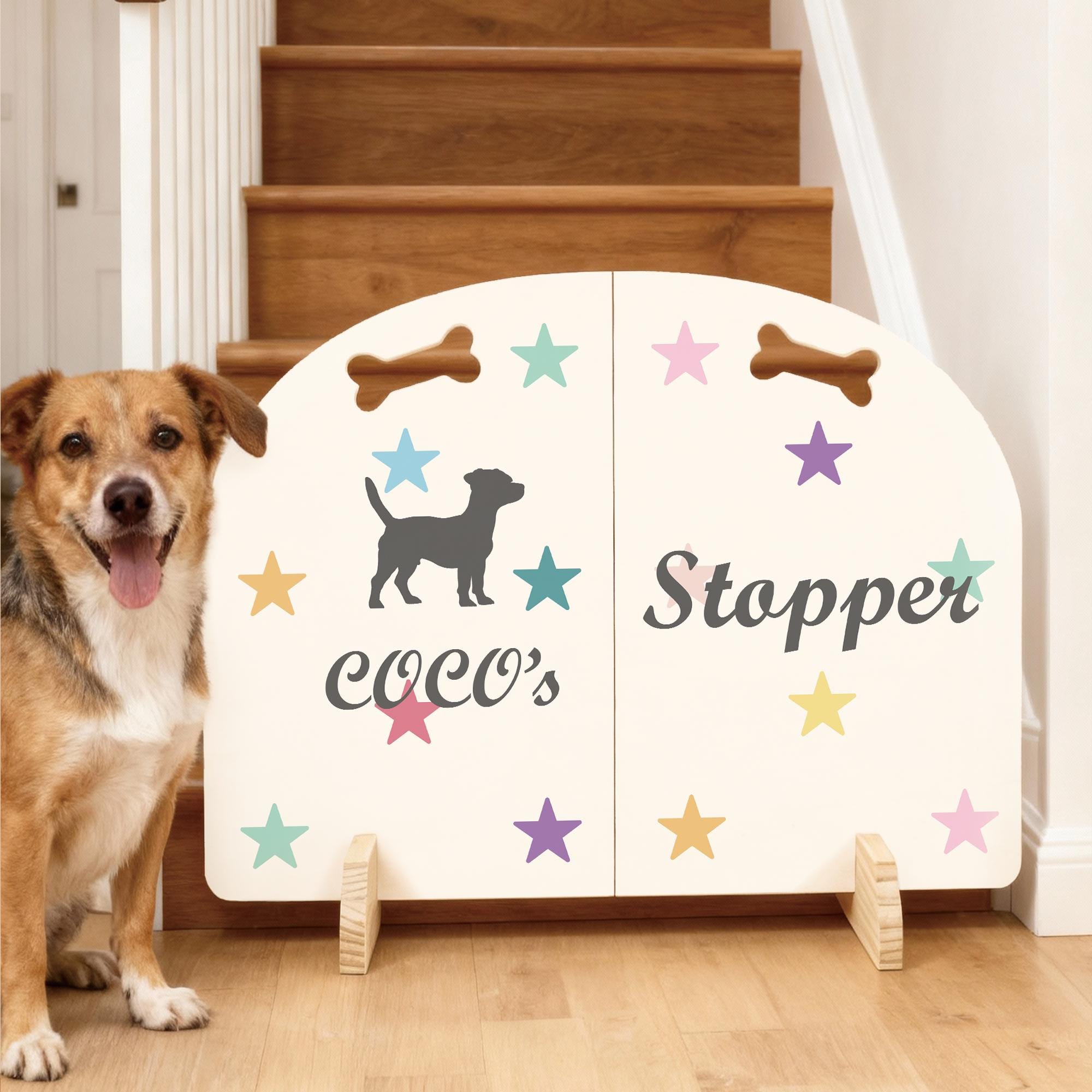 Customised Dog Stair Stopper, Personalized Dog Name Gate, Free Stan...