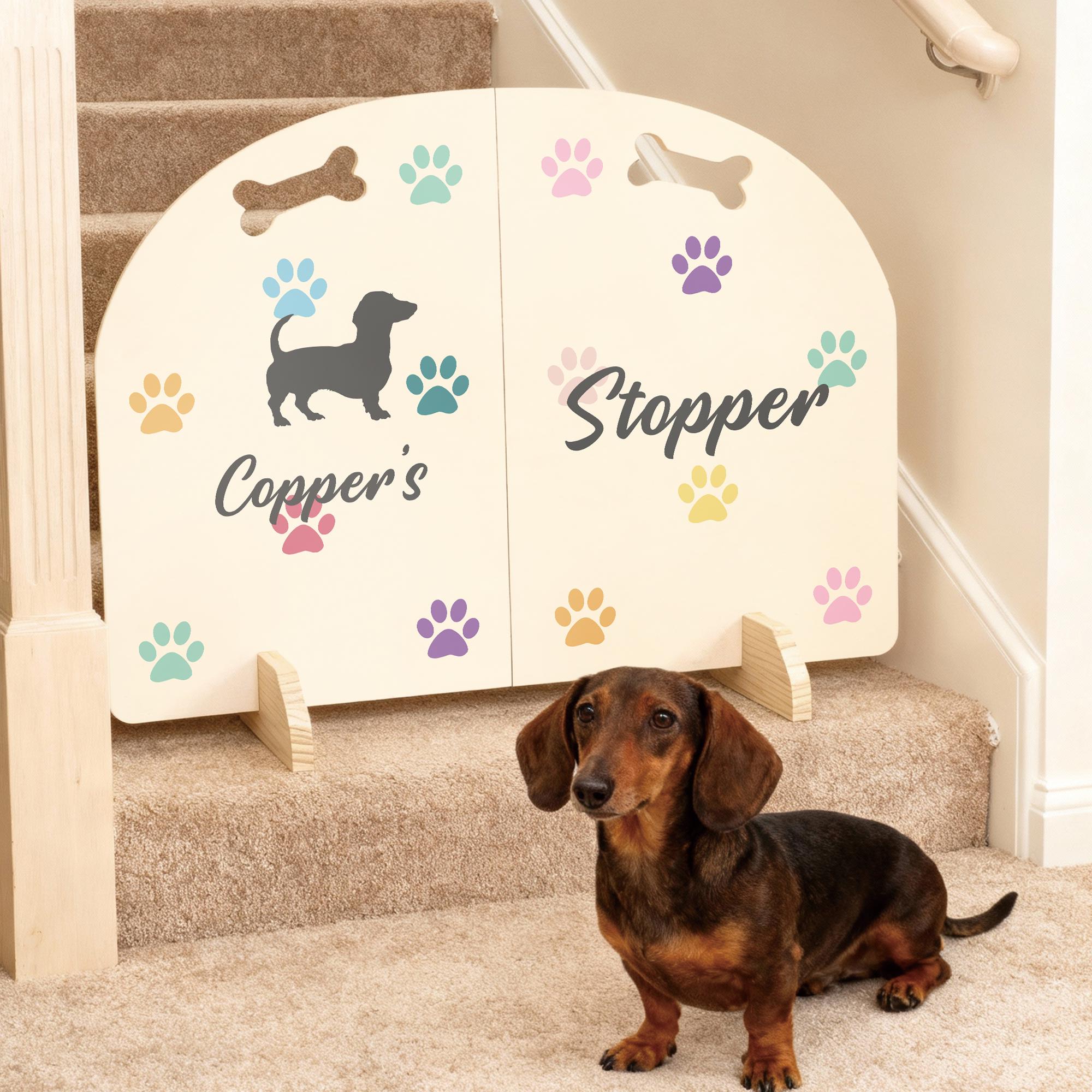 Customised Dog Stair Stopper, Personalized Dog Name Gate, Free Stan...