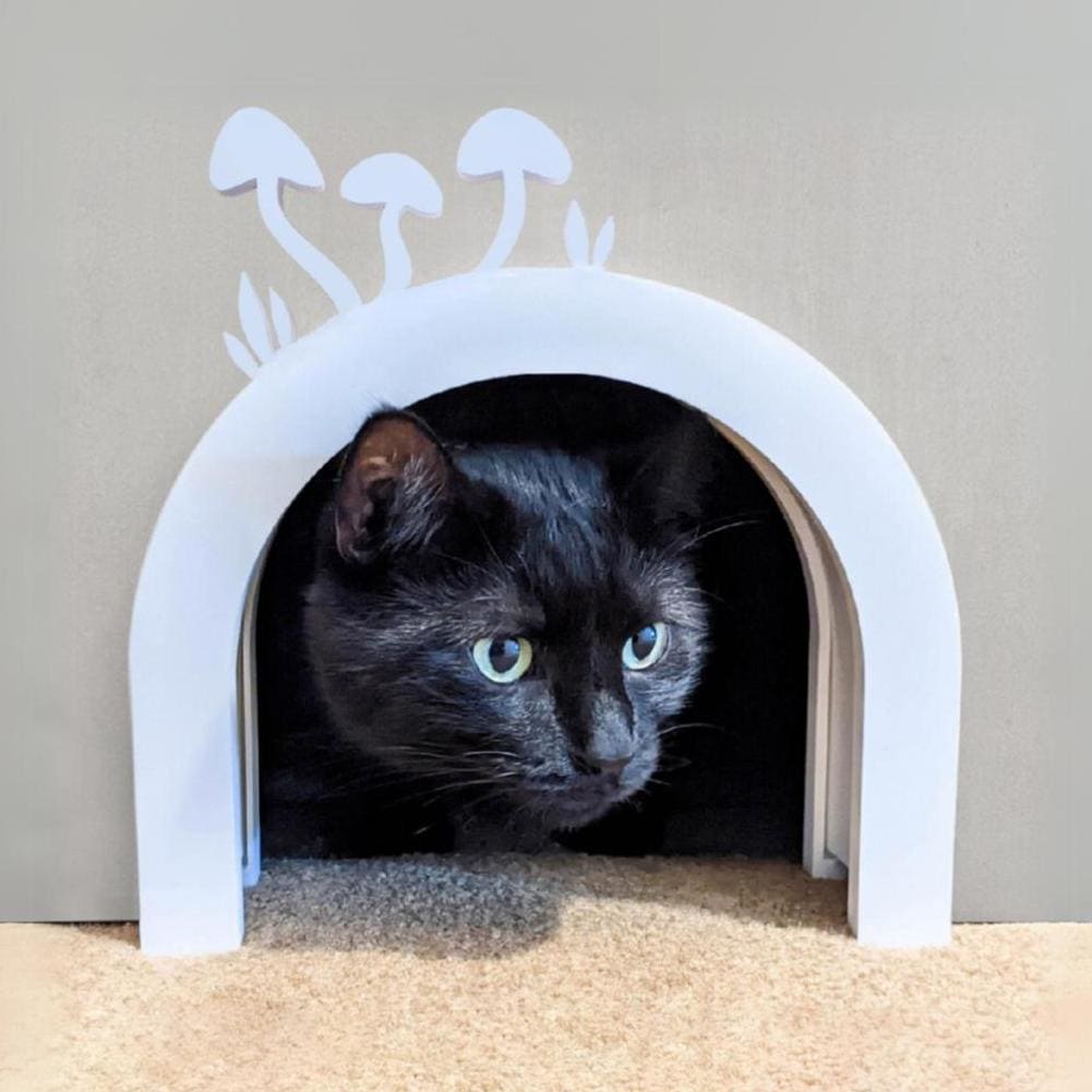 "Fairy and mushroom-inspired cottagecore indoor cat door or small dog door. Included is an inst...