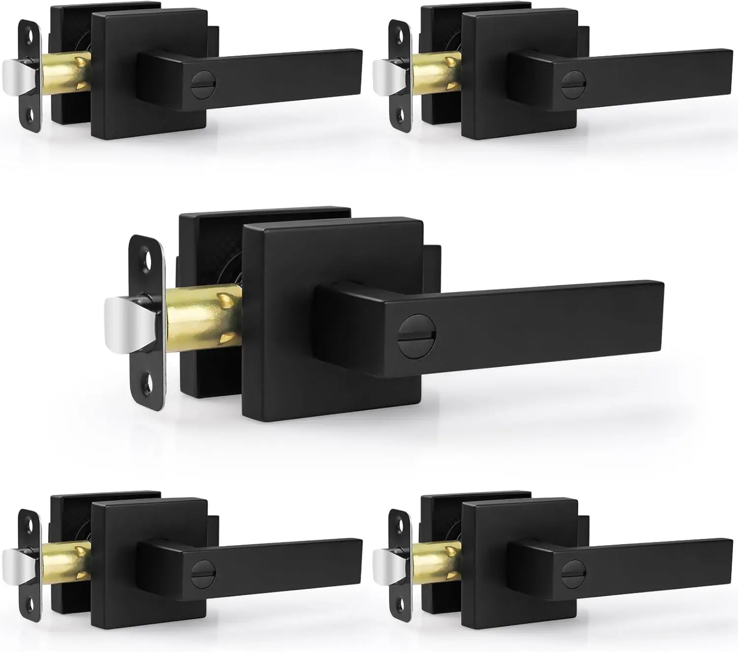 1 pair Black Door Handles Privacy Door Levers, Interior Door Knobs Square Door Levers Heavy Duty Doo...