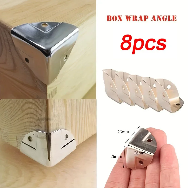 8 Pcs Silver Cabinet Trunk Corner Protector Furniture Case Box Corner Edge Safety Guards Box Legs De...