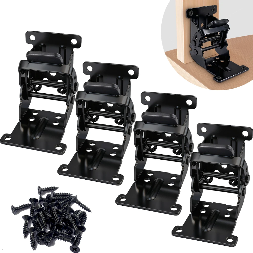 4Pcs Foldable Bracket Folding Locking Hinge Lock Extension Support Bracket Self-Lock Hinge with Scre...