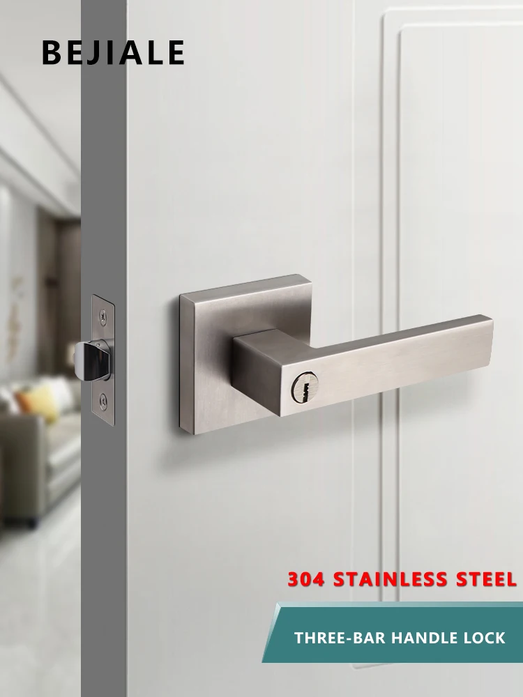 304 Stainless Steel Door Lock Three-pole Fire Door Handle Lock Household Key Silent Solid Wood Door ...