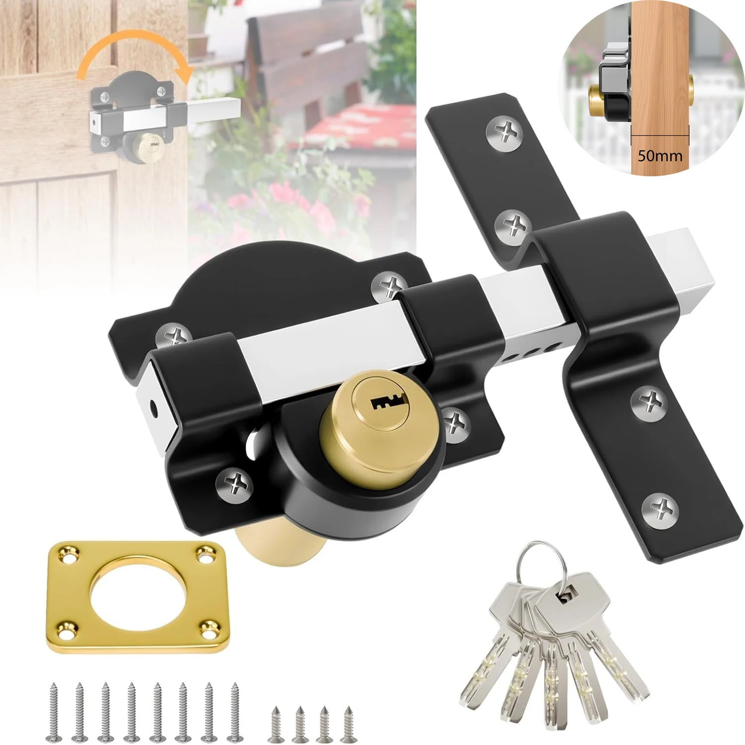 High Security Sliding Gate Lock,Heavy Duty 50mm Long Throw Stainless Steel Lock Set (5Keys),For Gard...