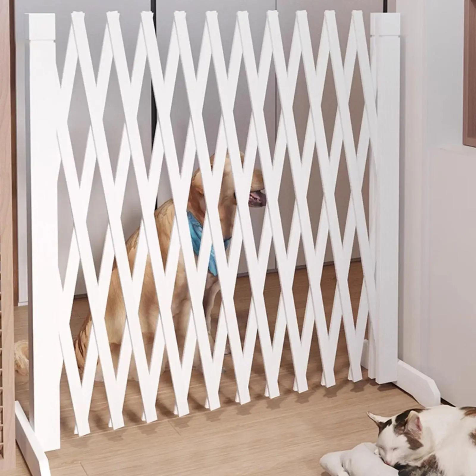 Adjustable Wooden Pet Gate Retractable Safety Fence for Dogs, Babie...