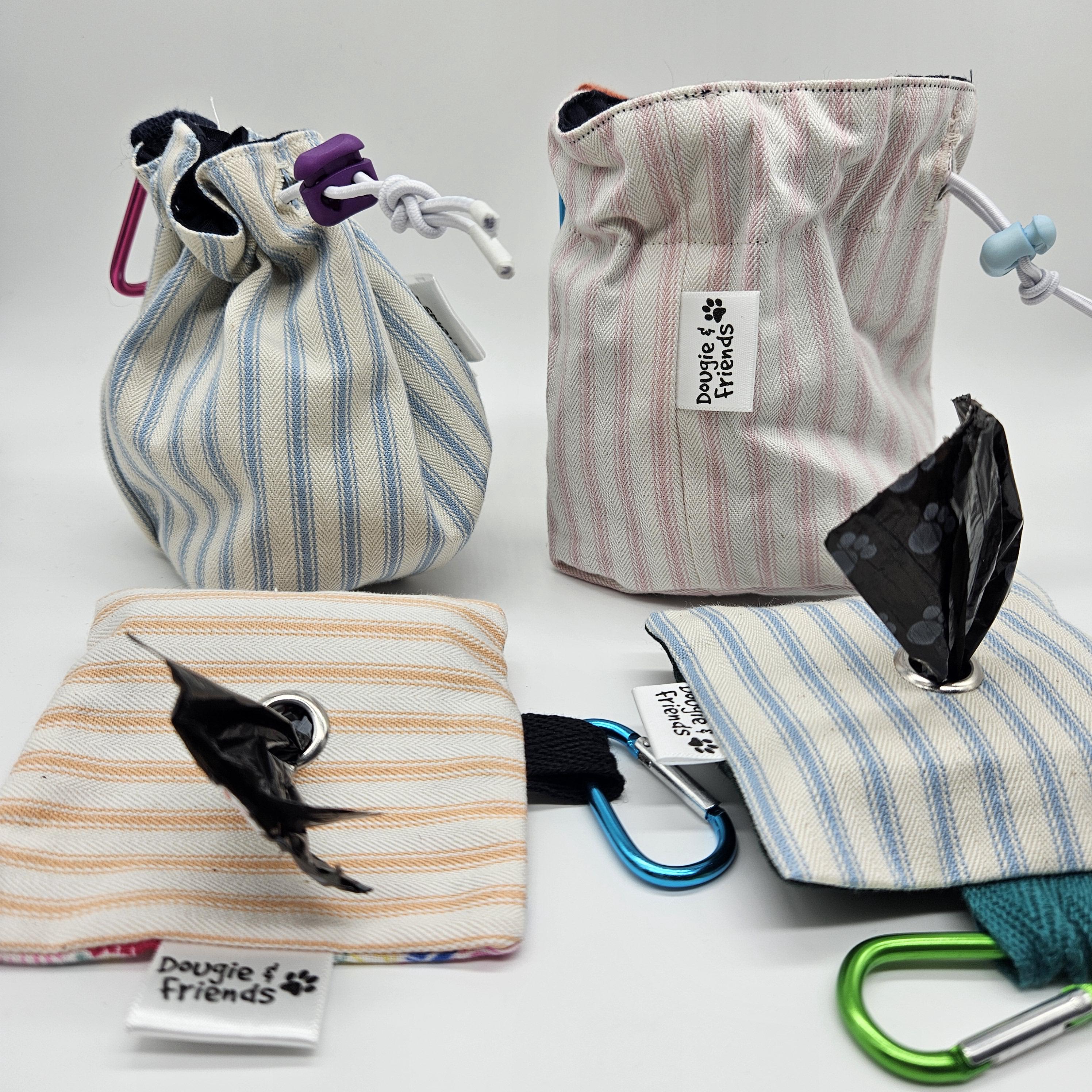 Beautiful handmade treat bags & Poo Bag holders. Blue pin stripe fabric Poo bag holders 80x80mm ...
