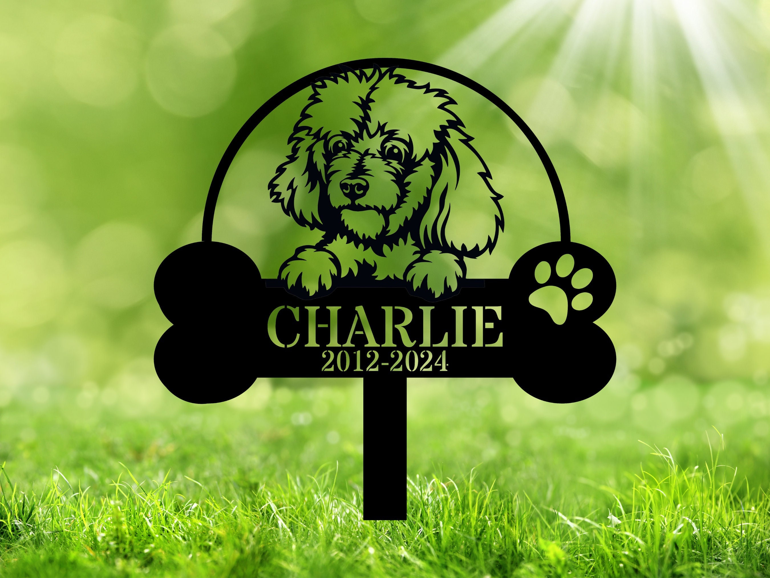 "Celebrate and remember your beloved pet with a custom Poodle memorial stake. The personalized ...