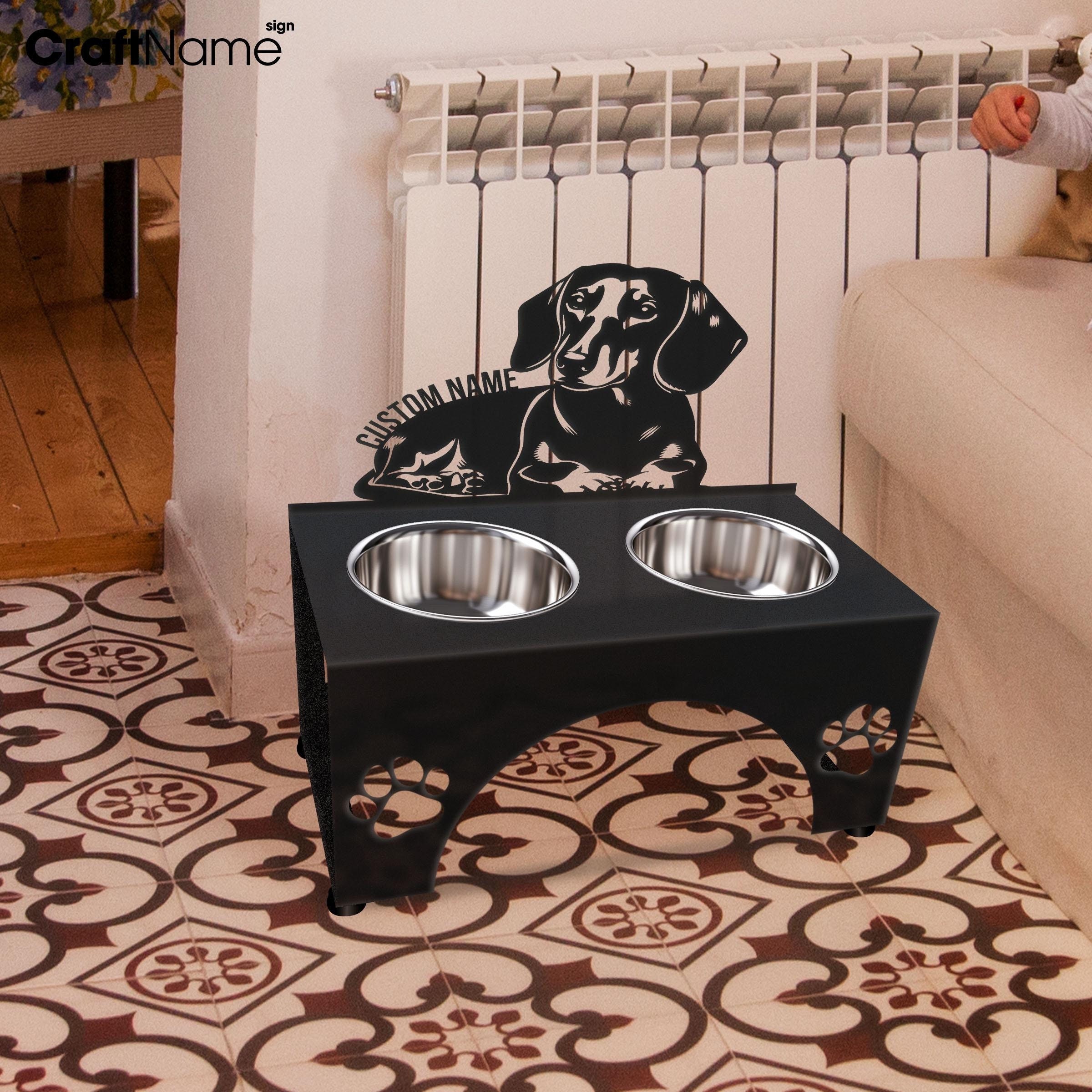 "Personalized Dachshund Metal Food Bowl Holder for Pets, Dog Bowl Stand, Dog Feeder Stand, Pet ...