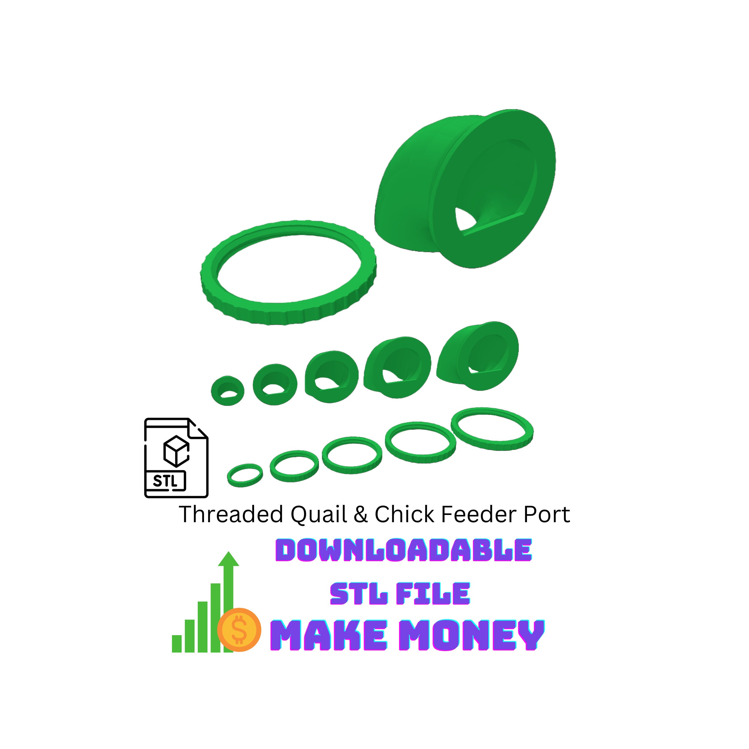 "Quail Bird and Chick Threaded Feeder Ports | STL File with Co...