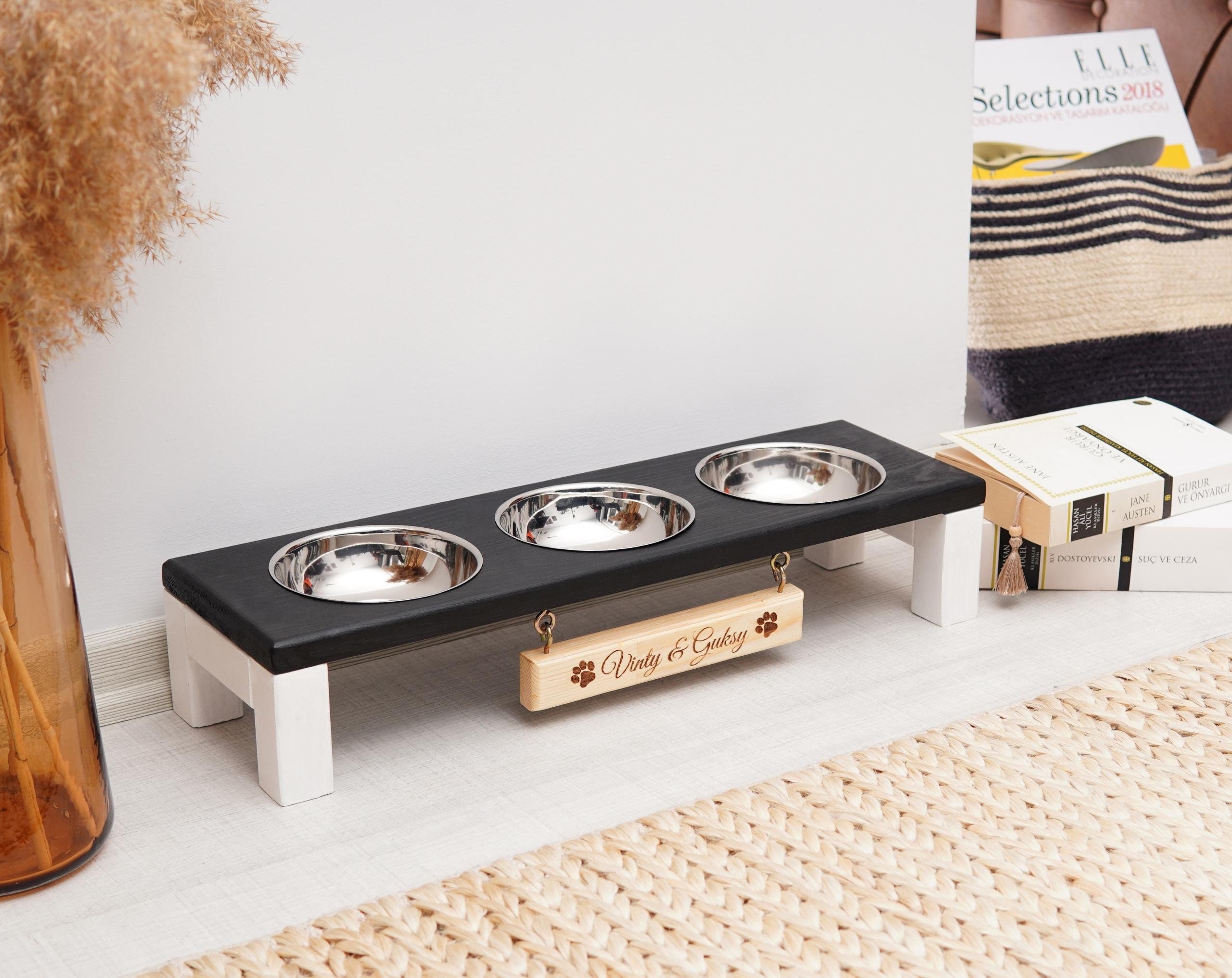 Triple Bowl Dog Feeder, Small 3 Bowl Dog Feeder, Raised Cat Bowl St...