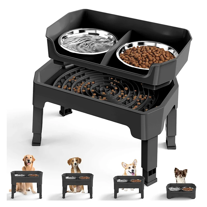 Adjust 4 Heights Pet Food Bowl Water Feeder Custom Slow Feeder for ...
