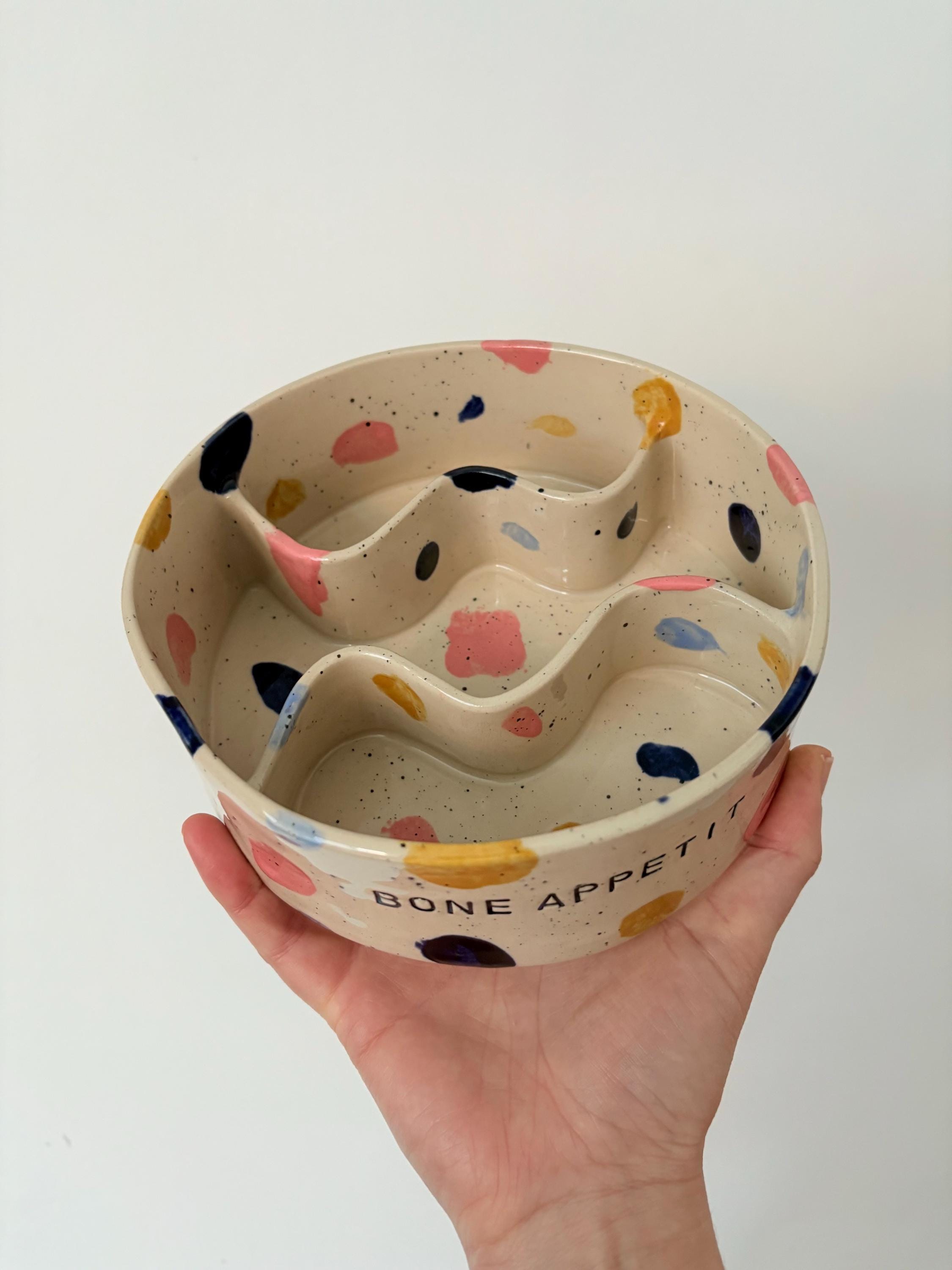 Personalised Confetti Slow Feeder Pet Bowl | Handmade Dog Bowl | Ce...